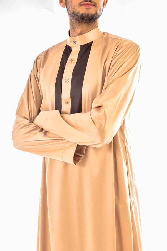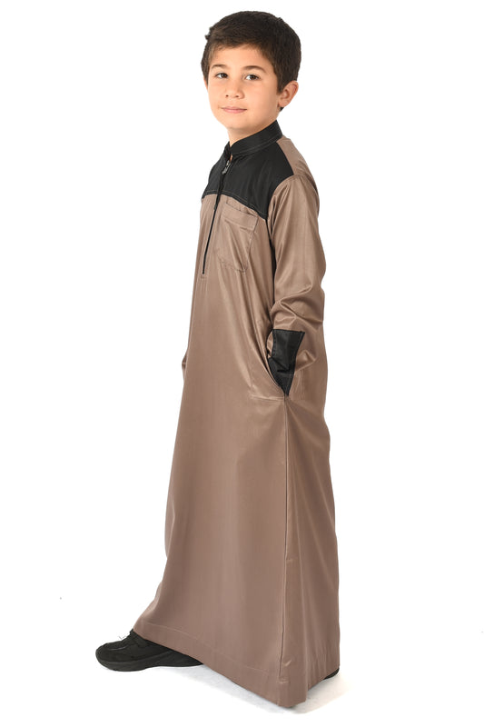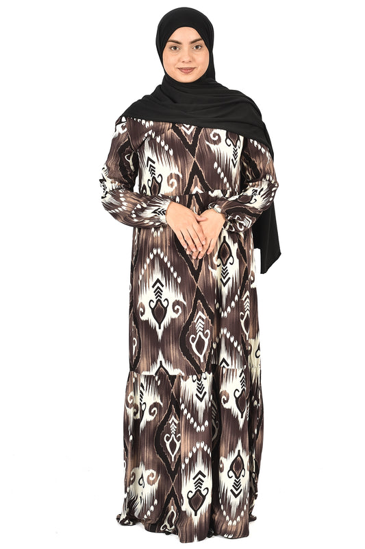 Brown Abaya with Modern Geometric Prints( guz dress )