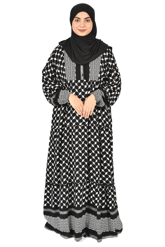 Abaya with Traditional Palestinian Keffiyeh Motif ( guz dress )