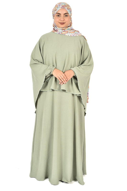 Elegant Two-Piece Loose-Fit Dress in Soft Green with a Modern and Comfortable Design for Daily Wear and Special Occasions