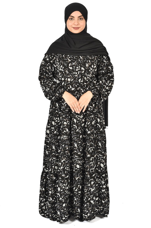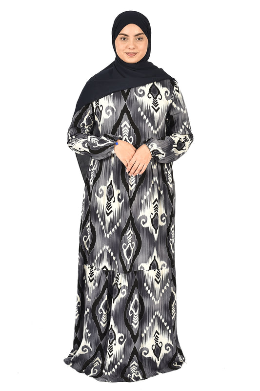 Elegant Black & Grey Printed Abaya with Modern Style( guz dress )