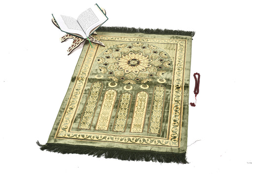 Elegant Prayer Rug – Olive Green with Ornamental Circular Design ( musallahs )