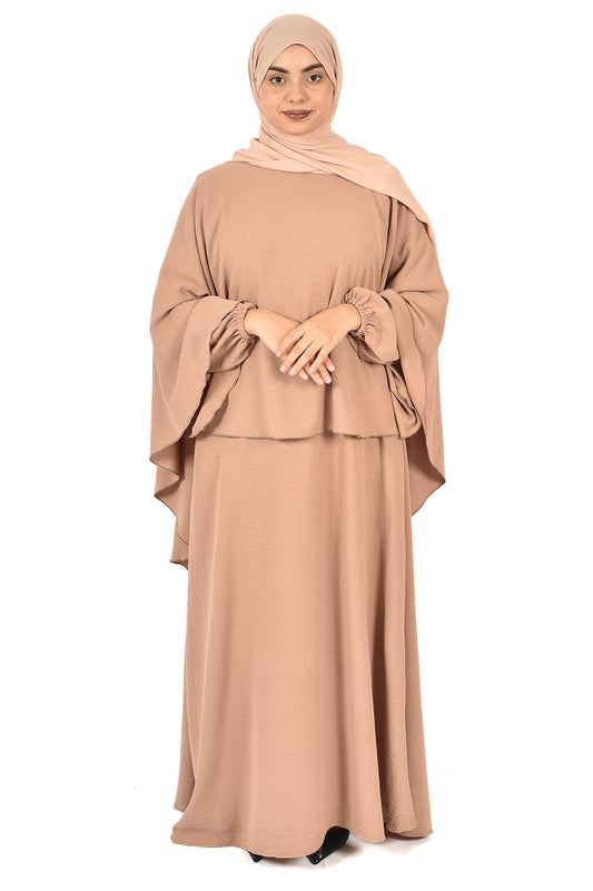 Elegant Two-Layer Abaya with Black Floral Embroidery (ladies abaya )