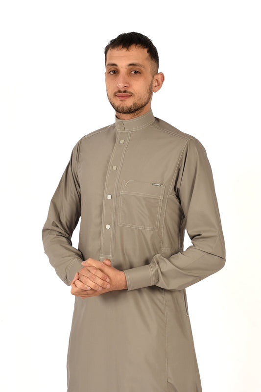 Al Fares Collar Thobe – Steeple Gray