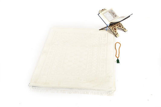 Luxury Velvet Padded Prayer Mat – Off White – Large Size (musallahs)
