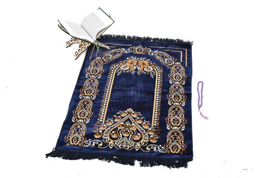 Premium Prayer Rug – Classic Navy Blue with Elegant Gold Embroidery ( musallaha )