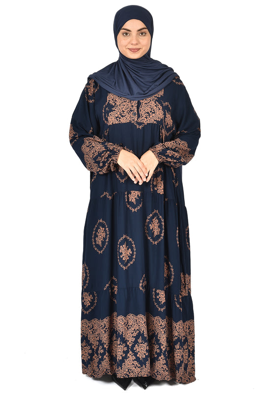 Royal Navy Abaya with Traditional Golden Print( guz dress )