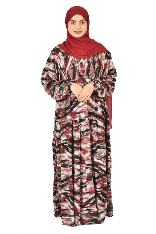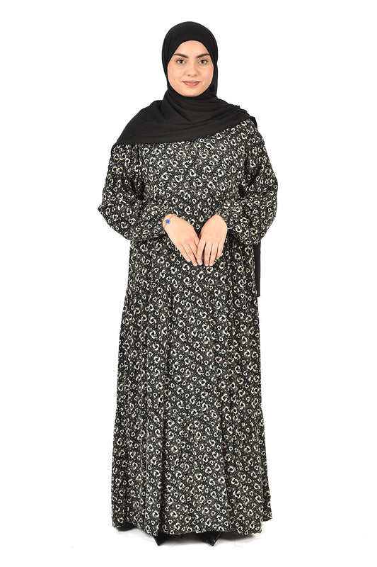 Printed Black Abaya with Elegant Loose Fit Design( guz dress )