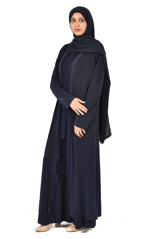 Women's 3-Piece Loose Abaya Set – Elegant Design in Dark Navy Blue (ladies abaya)