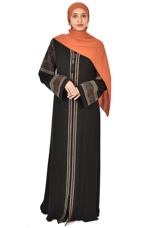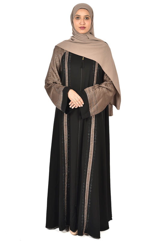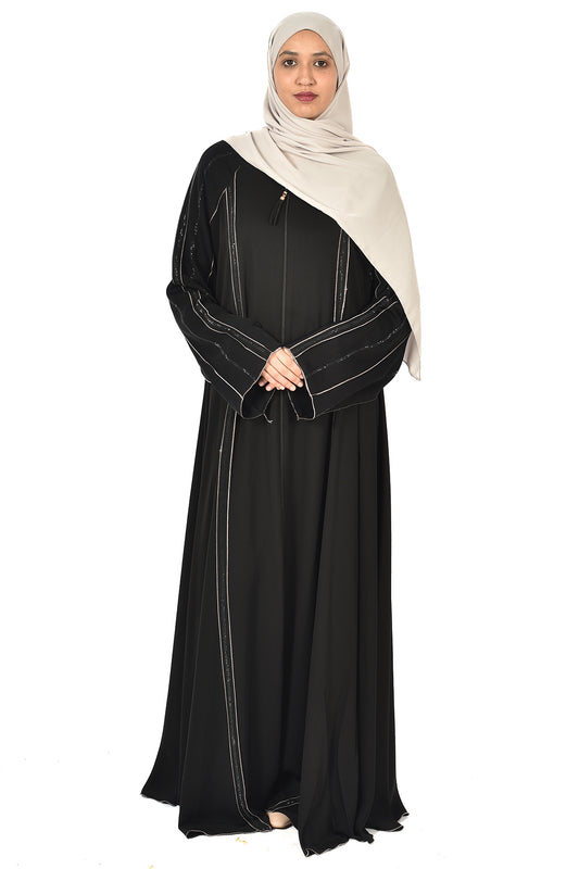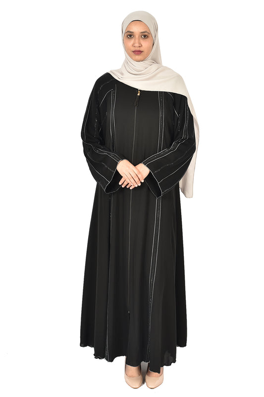Black Abaya with Embellished Sleeves & Shimmering Front Panel ( ladies abaya )