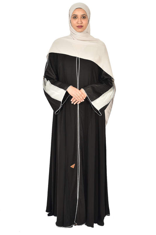 Black Abaya with White Sleeve Panels & Minimalist Design (ladies abaya)