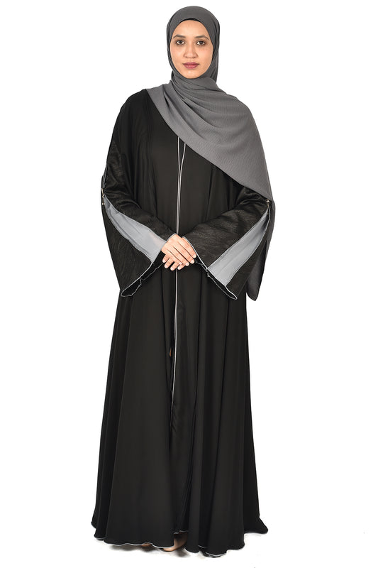 Black Abaya with Grey Panel Sleeves and Leather Touch (ladies abaya)