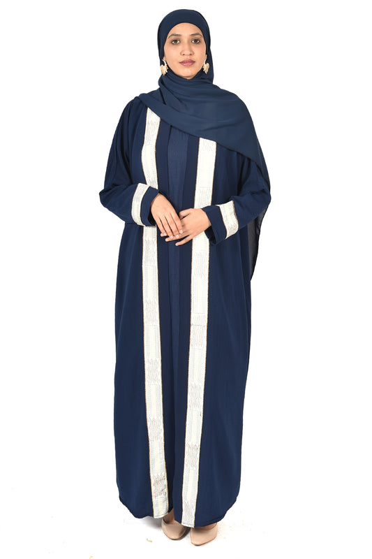 Navy Blue Abaya with Elegant White Embroidered Trim (ladies abaya )