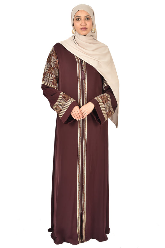 Maroon Abaya with Geometric Embroidery and Tassel Accent (ladies abaya )