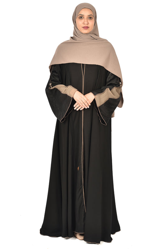 Black Abaya with Glossy Beige Cuff Accents ( ladies abaya )