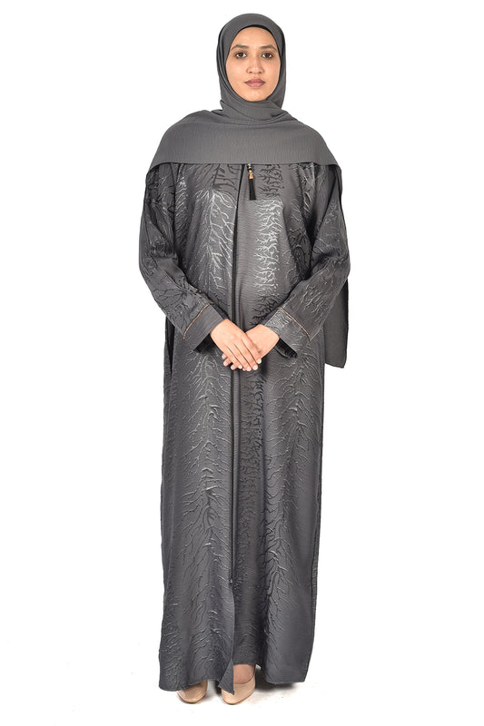 Elegant Charcoal Grey Abaya with Textured Shine ( ladies abaya )