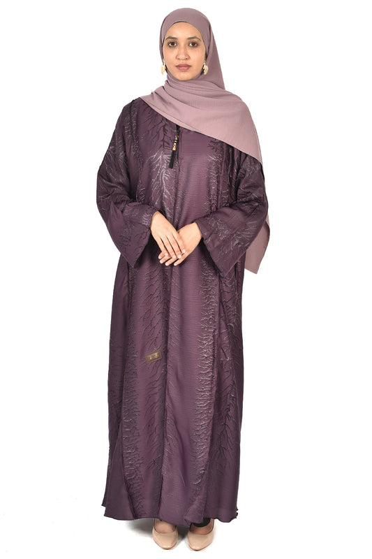 Deep Purple Textured Abaya with Elegant Gloss Finish ( ladies abaya )