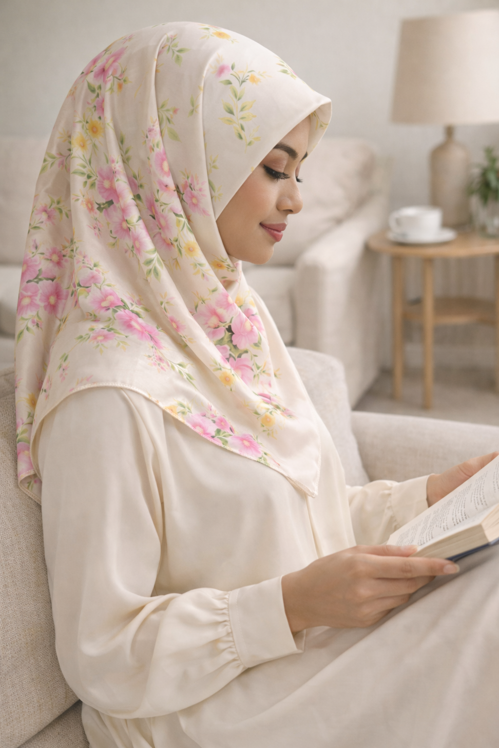 With its graceful floral detailing, timeless colour palette, and luxurious satin finish, the Baby Breath scarf is a refined essential for any modest wardrobe.