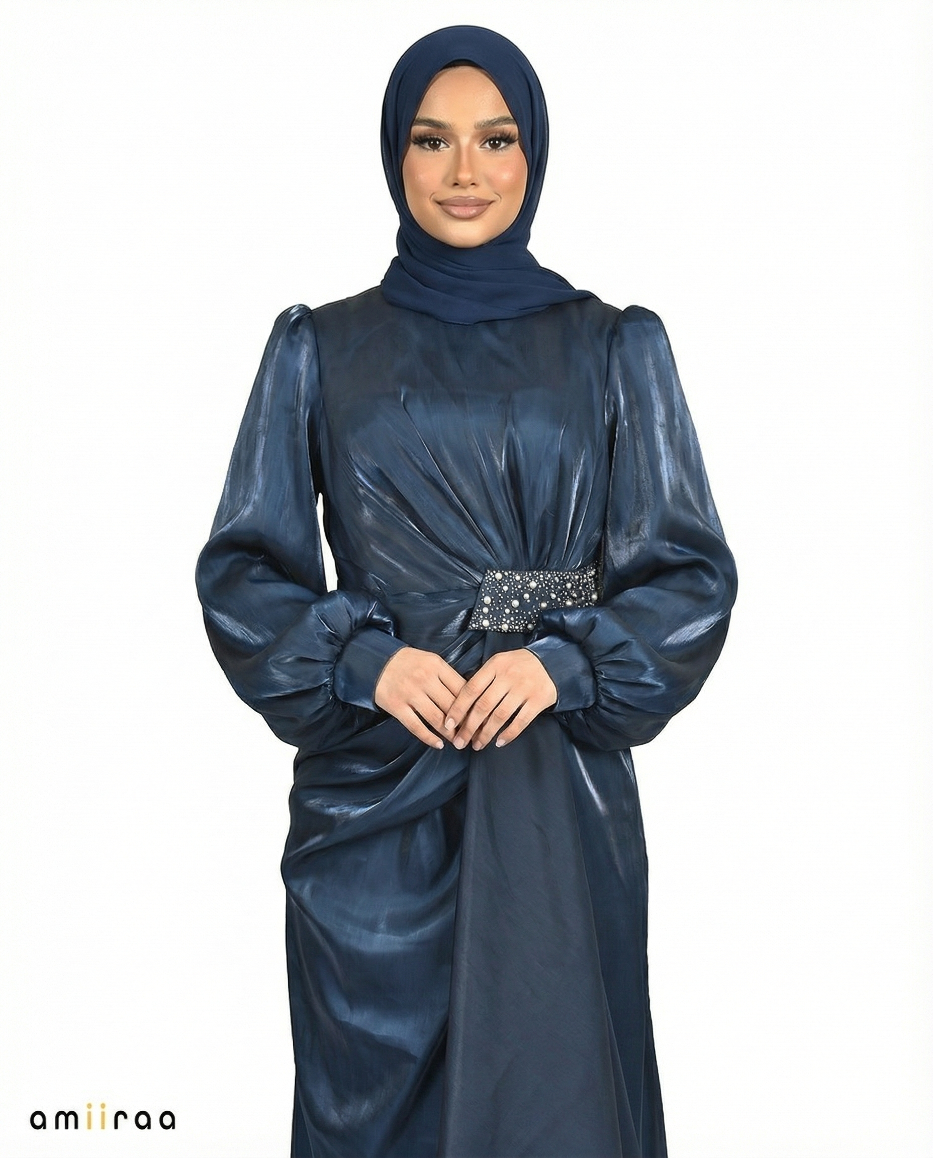 Perfect for evening occasions, formal events, and special gatherings, this piece blends understated glamour with timeless modesty.