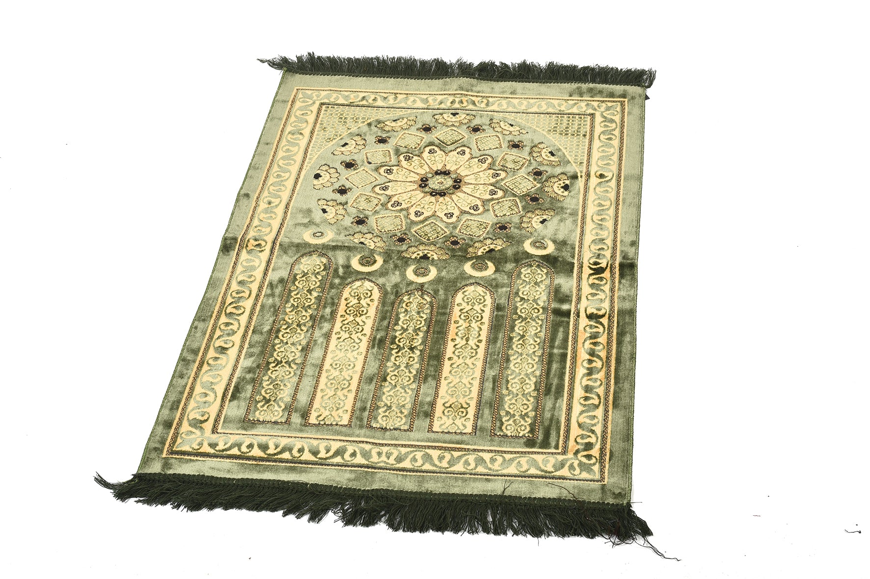Elegant Prayer Rug – Olive Green with Ornamental Circular Design ( musallahs )