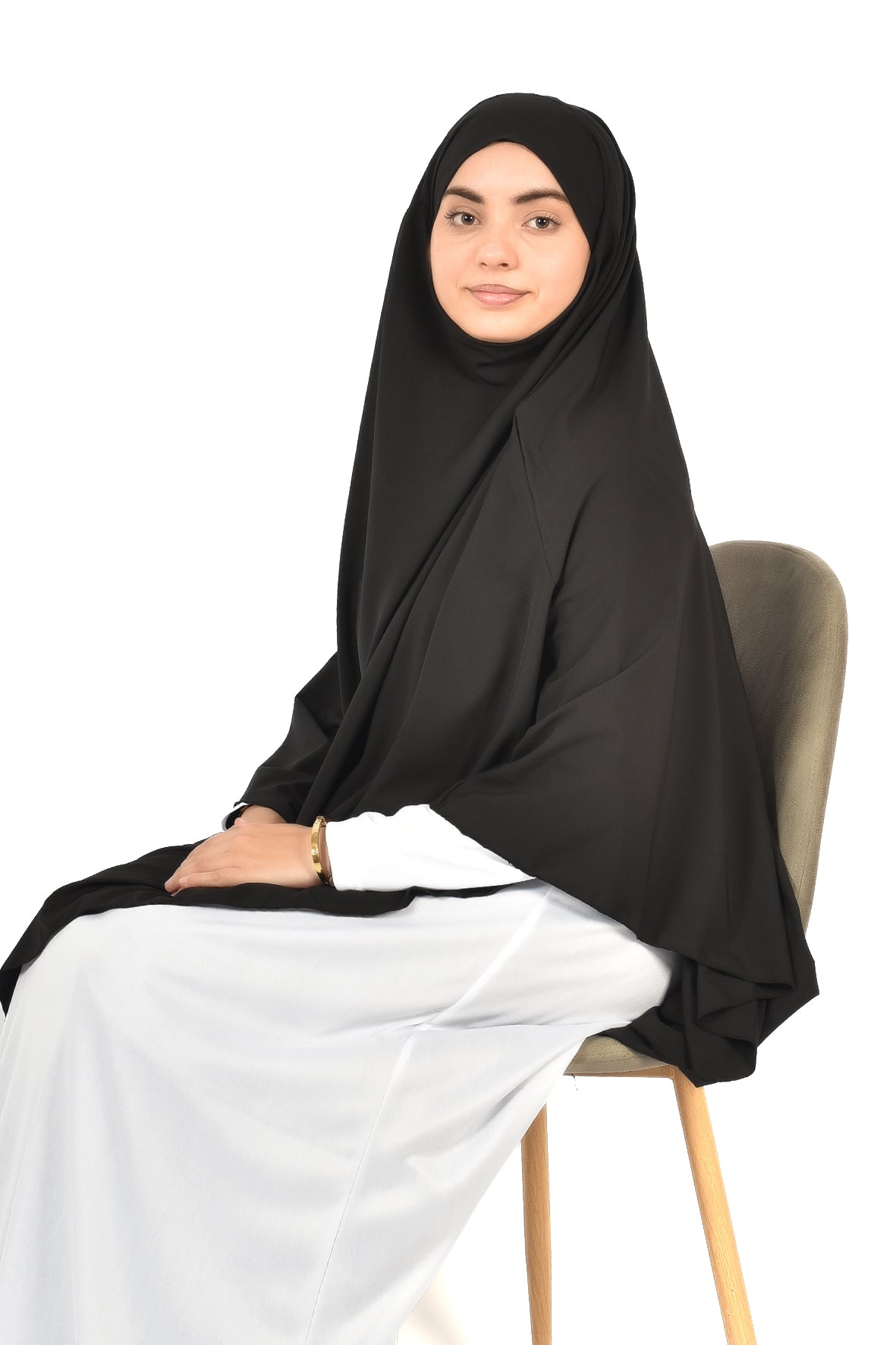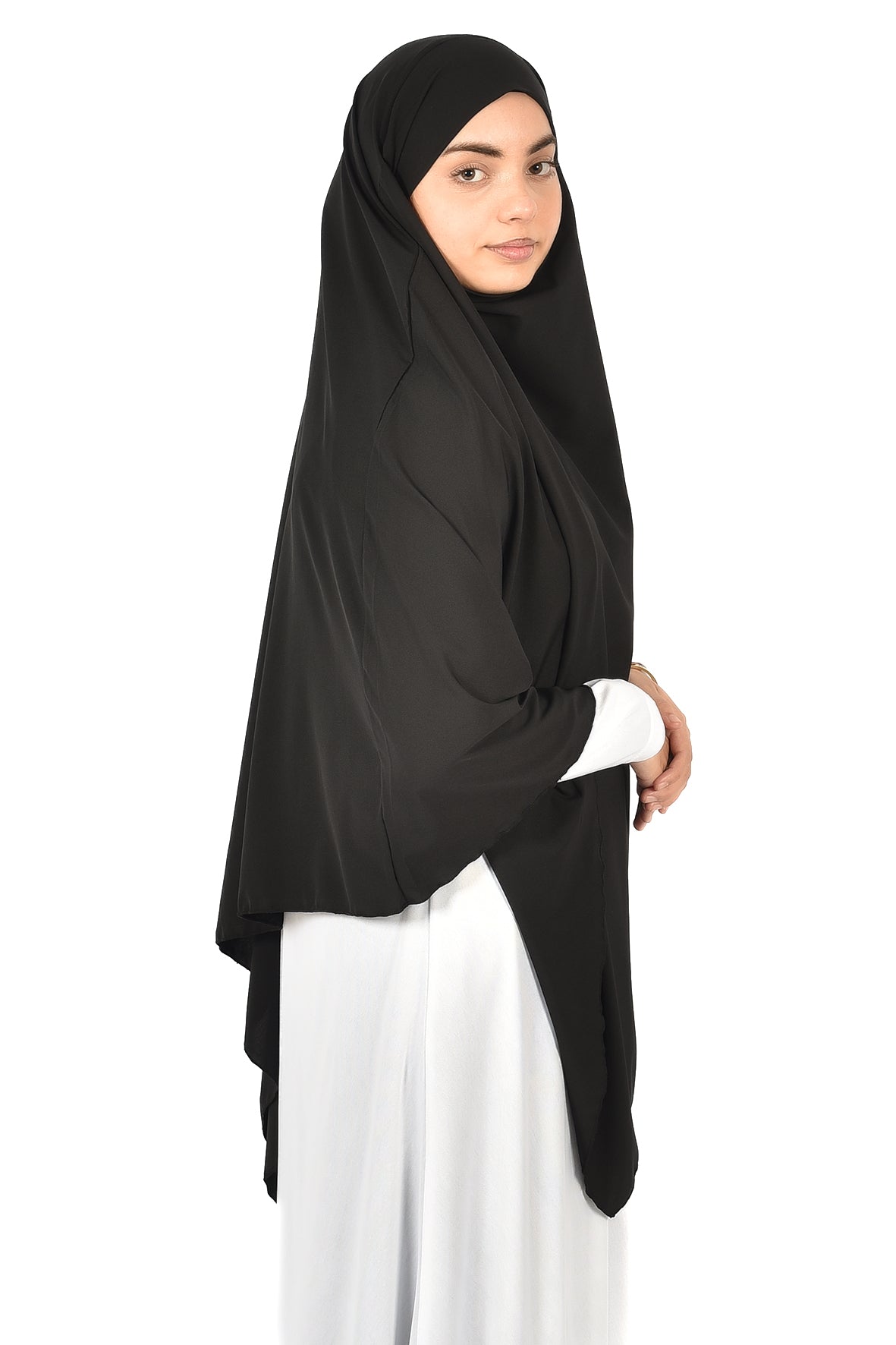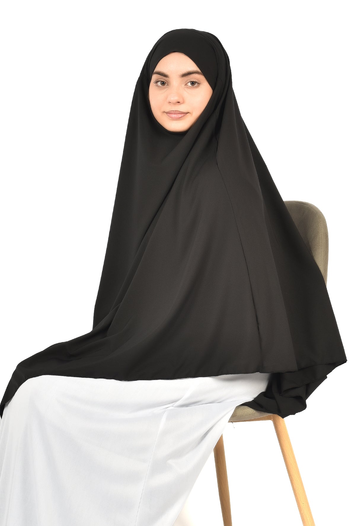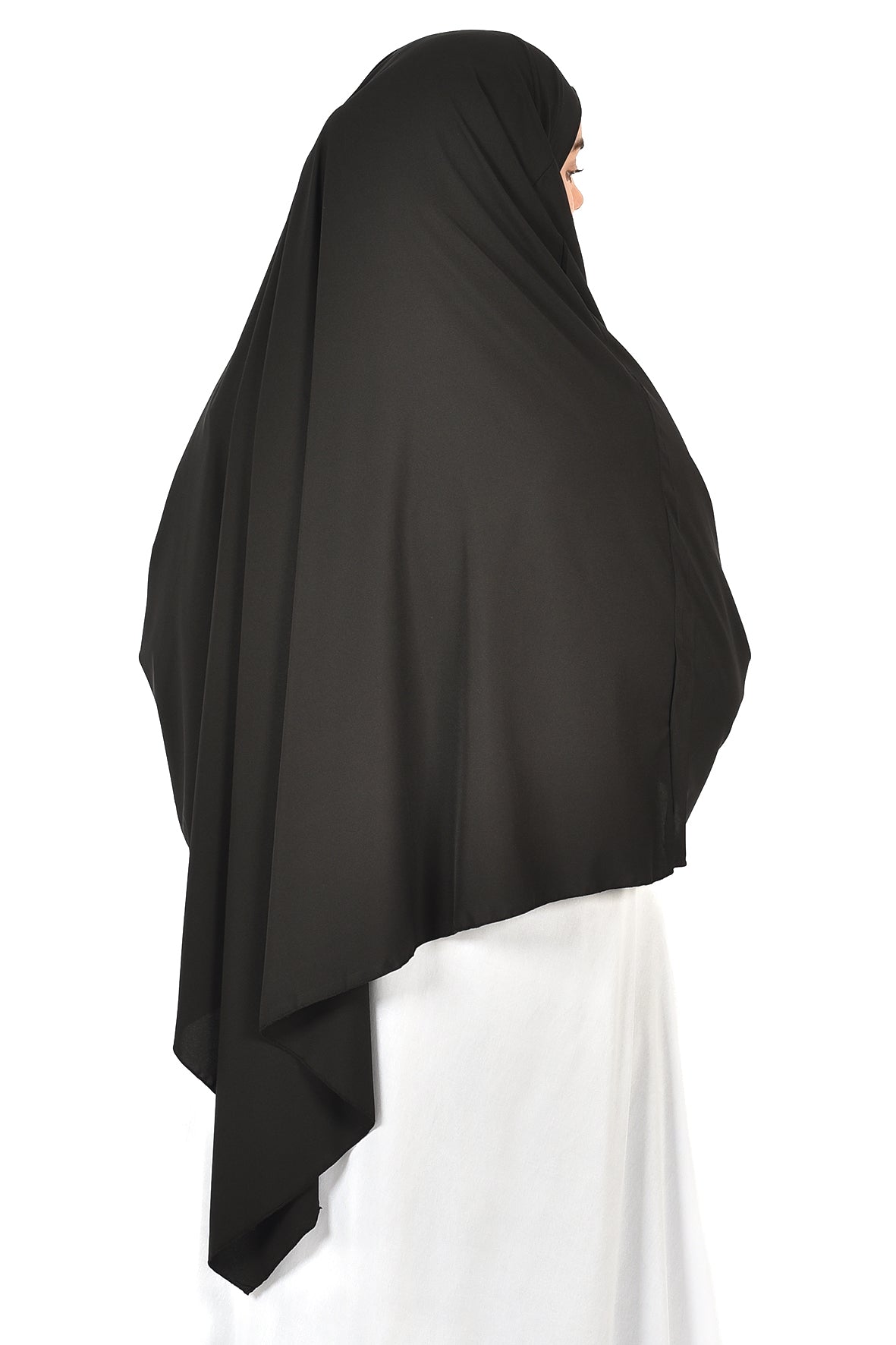 Elegant Women’s Khimar – Classic Black, Soft Crepe Fabric