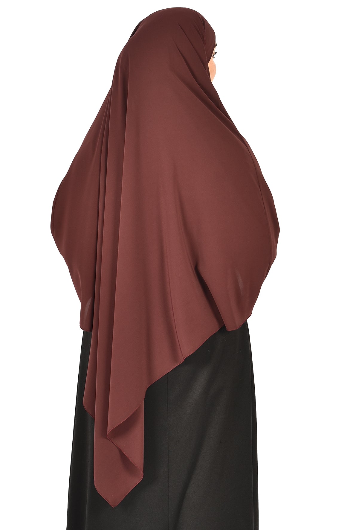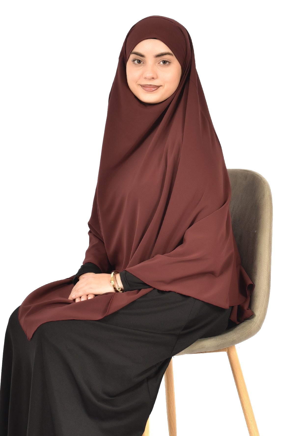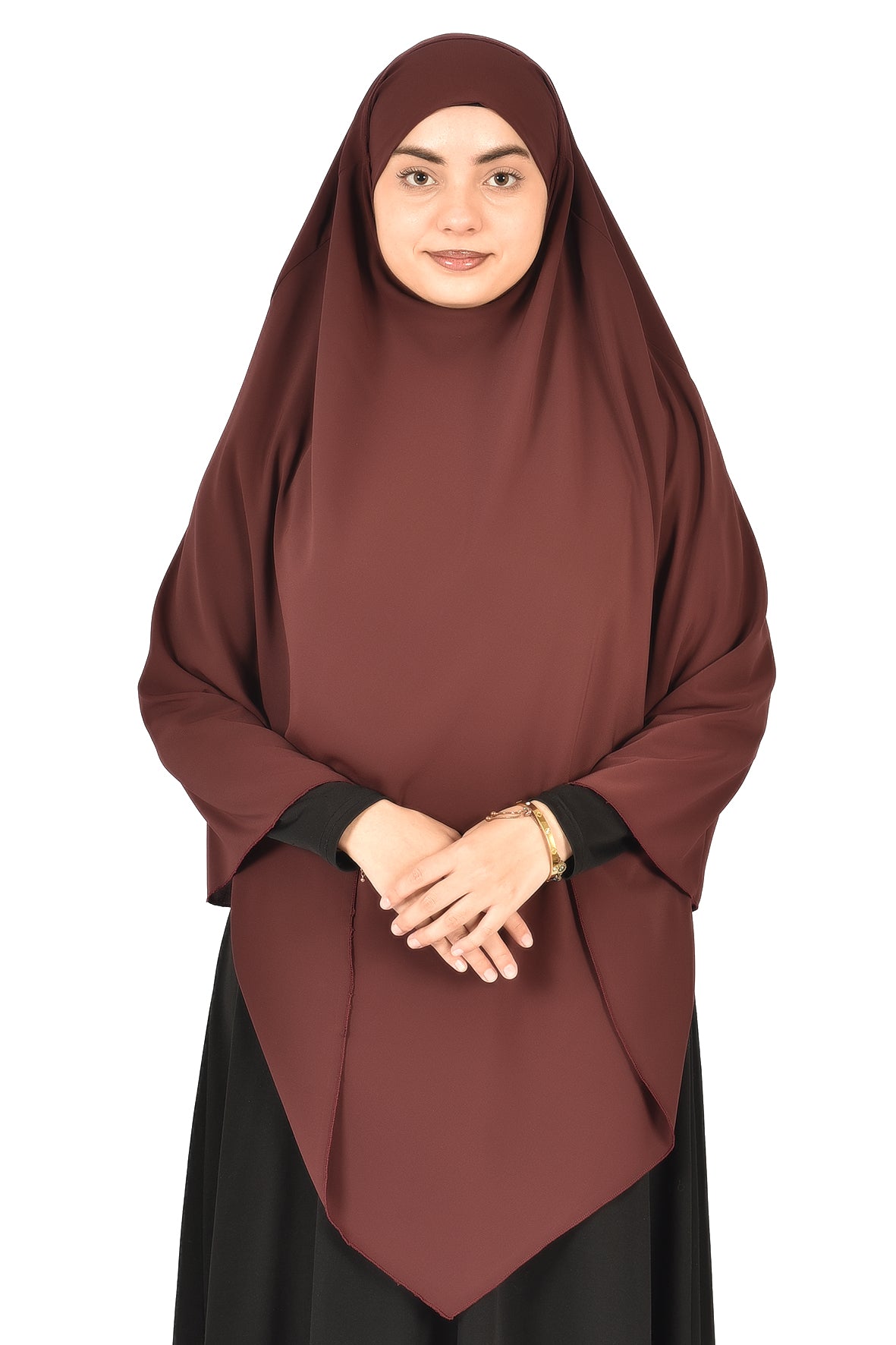 Enjoy a modest and stylish look with this elegant khimar in a rich dark chocolate brown shade. Made from soft, breathable crepe fabric, it ensures maximum comfort throughout the day. Designed with full chest and shoulder coverage and a comfortable face opening, it’s perfect for all seasons. Available in multiple colors to match your outfits, making it a practical and elegant choice for any occasion.