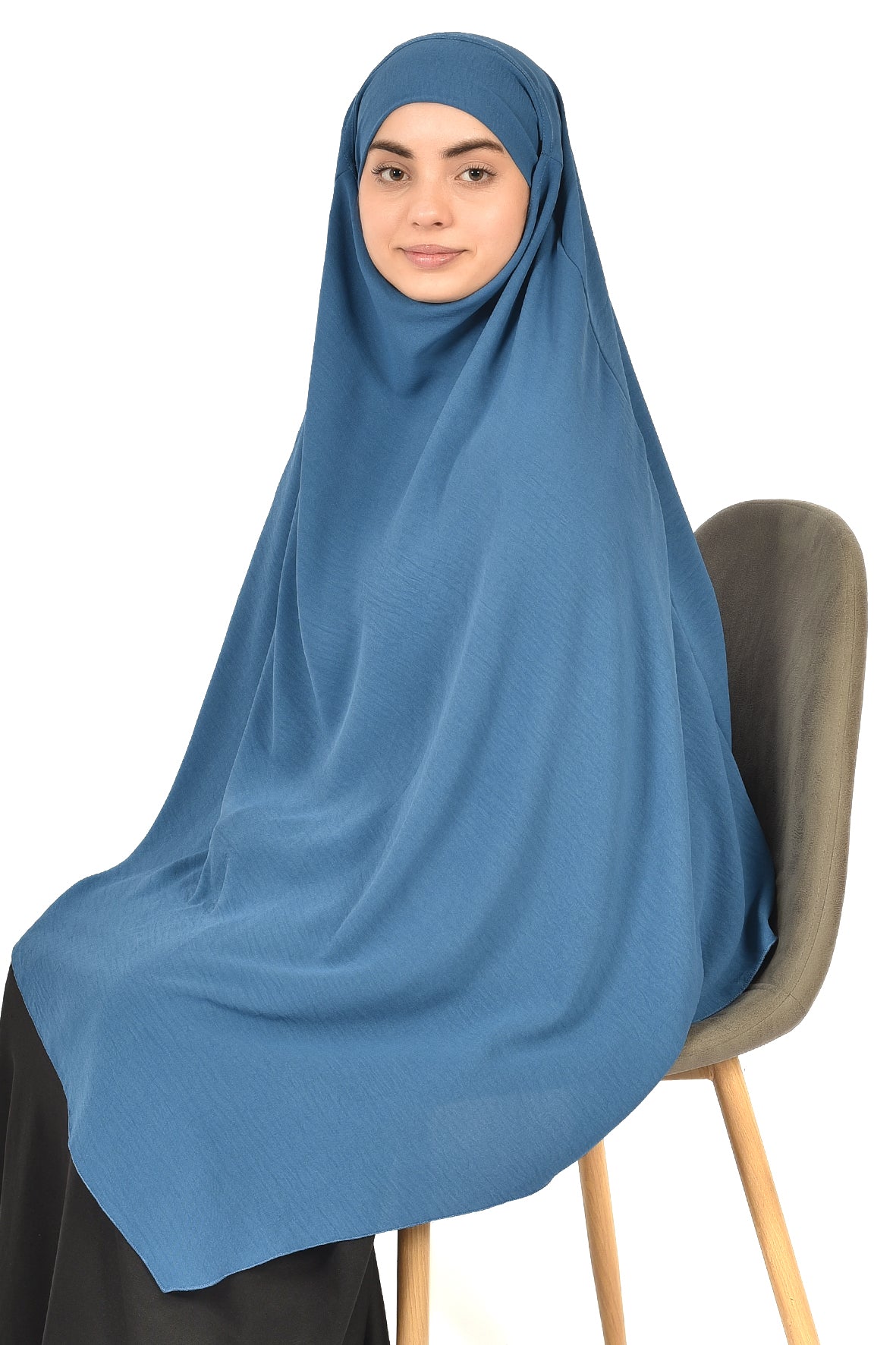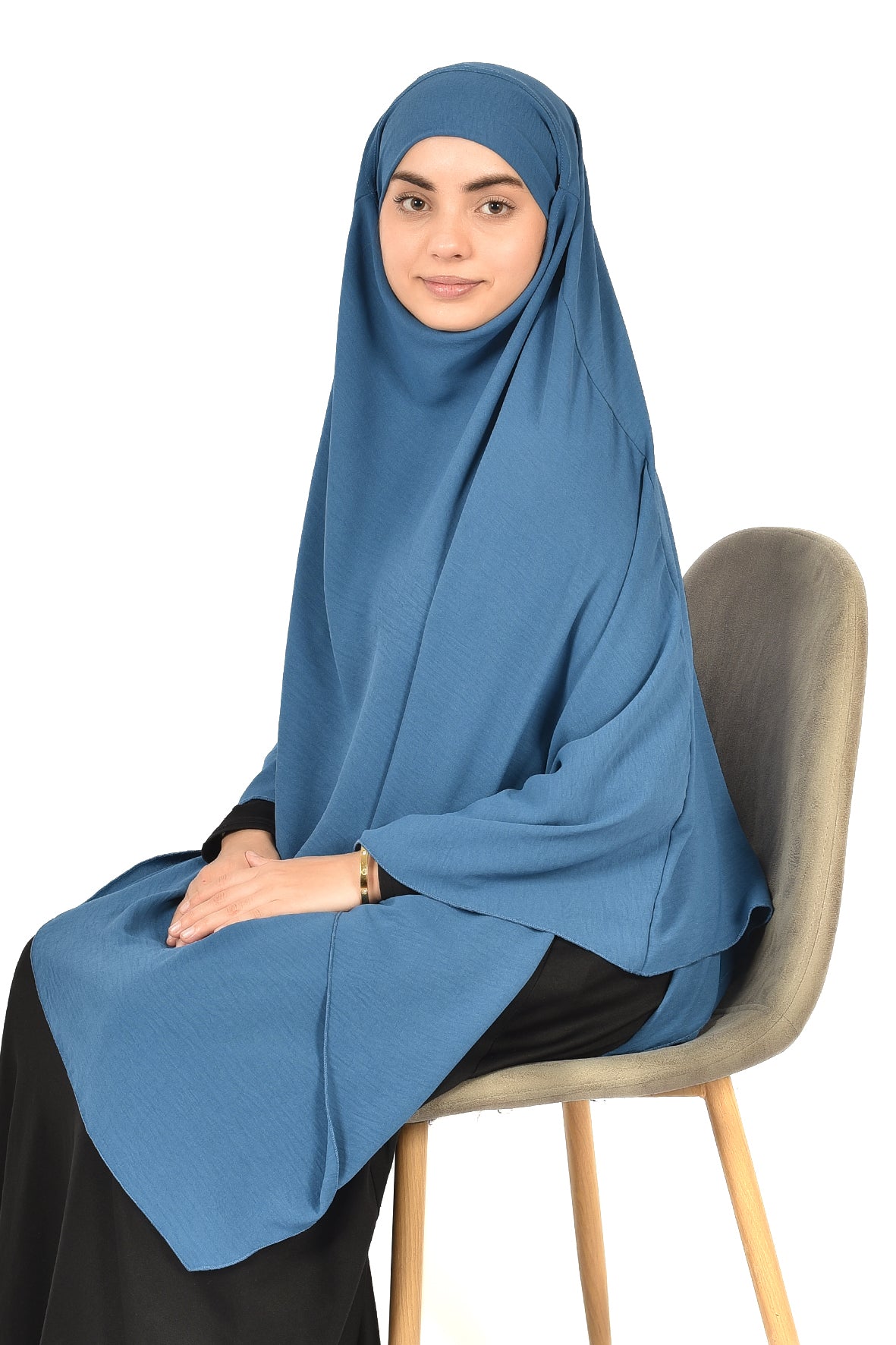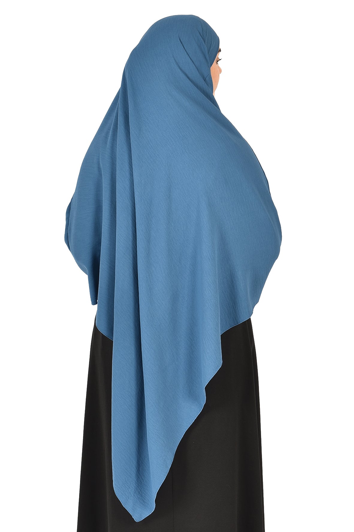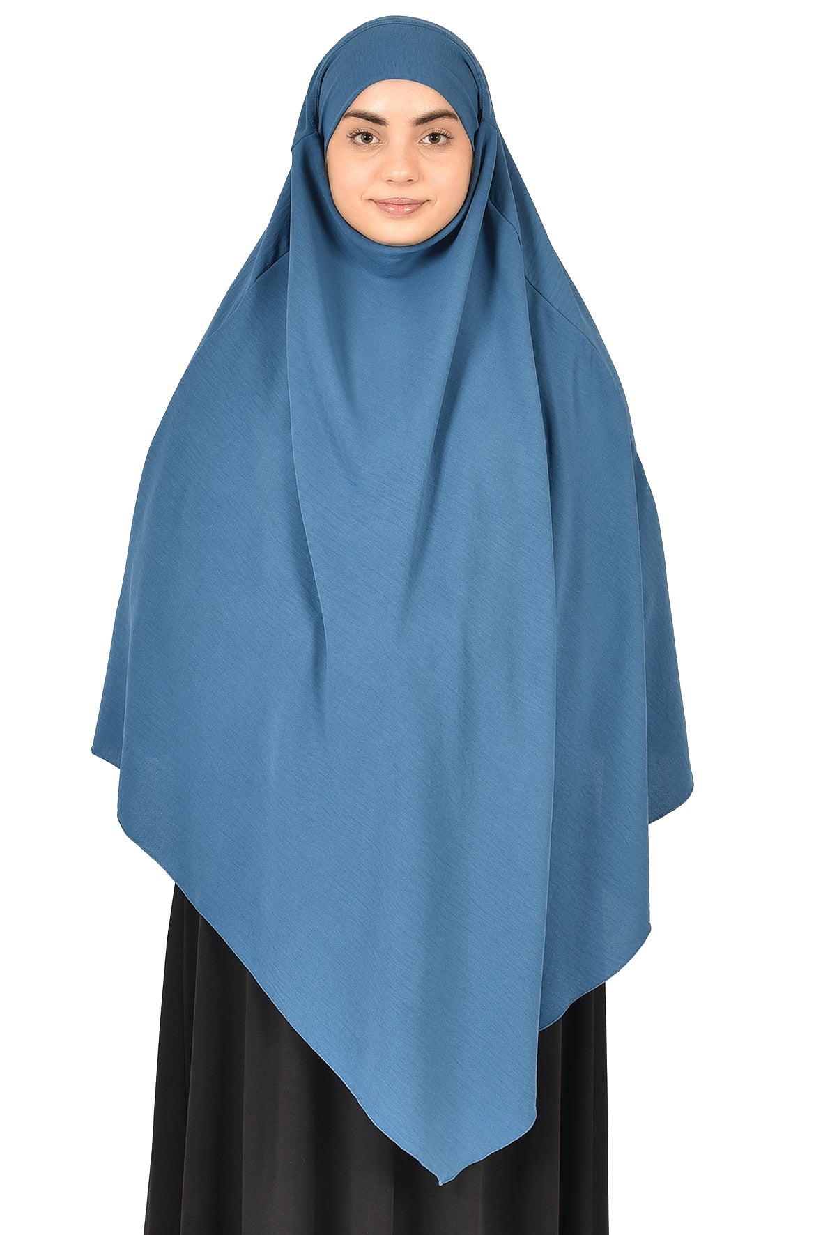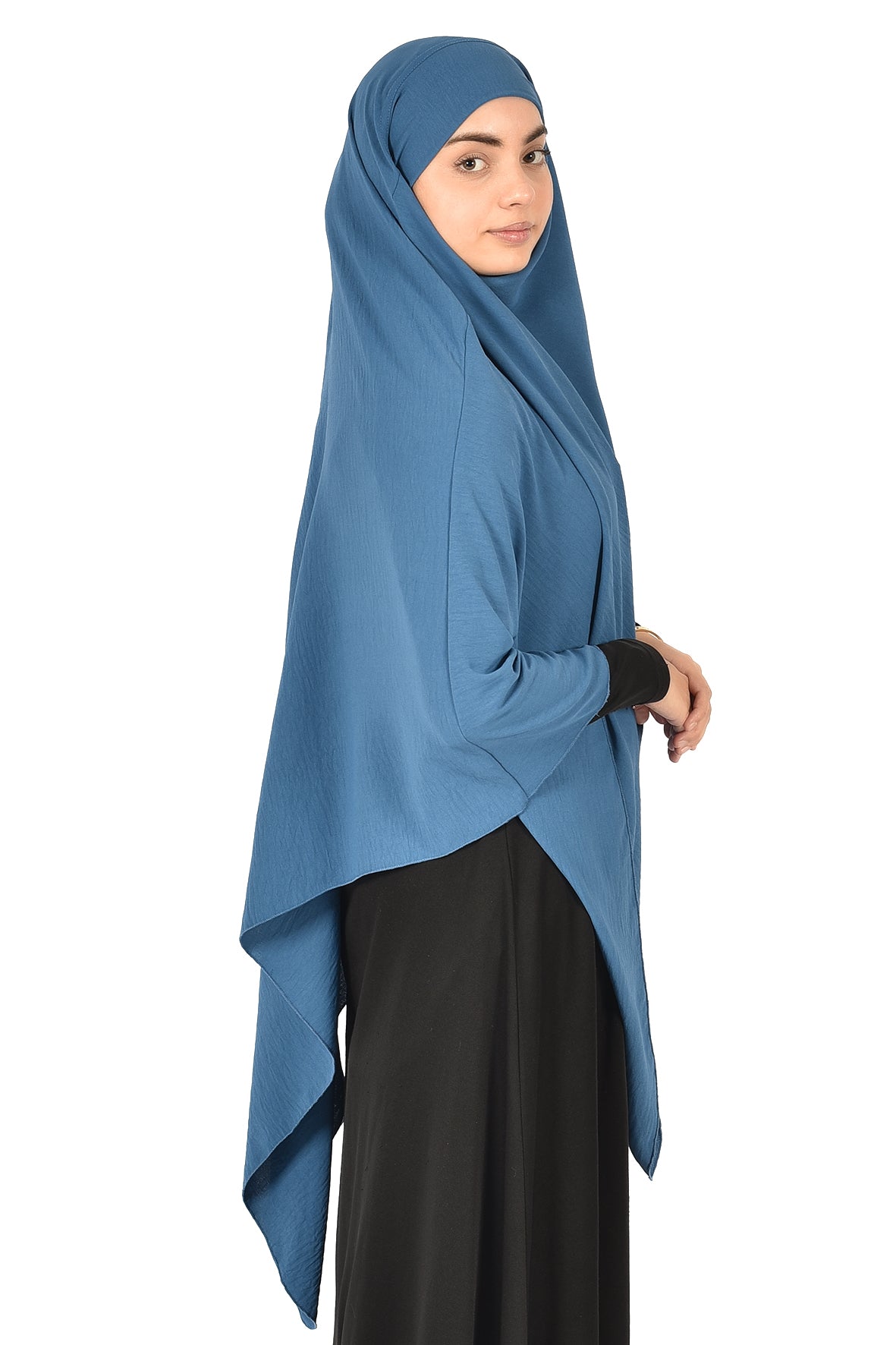 Elegant Women’s Khimar – Denim Blue, Soft Crepe Fabric