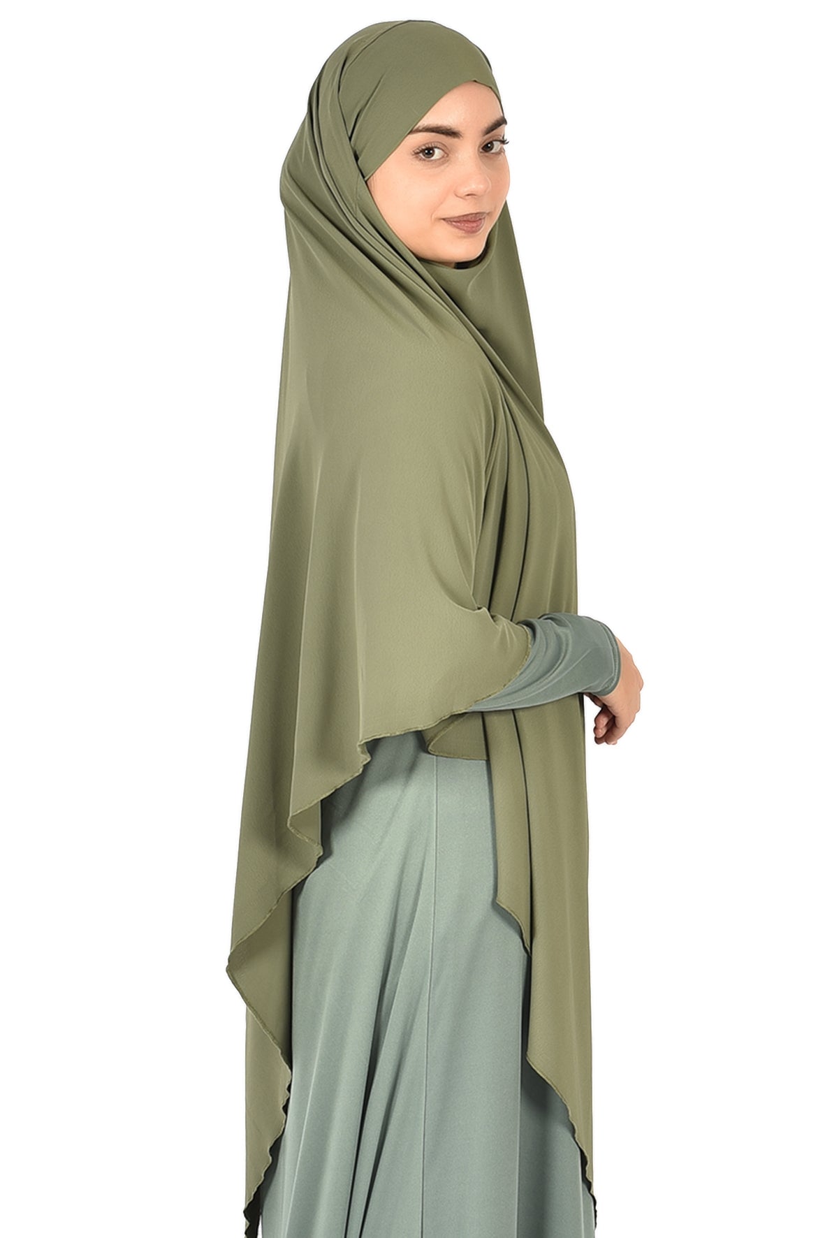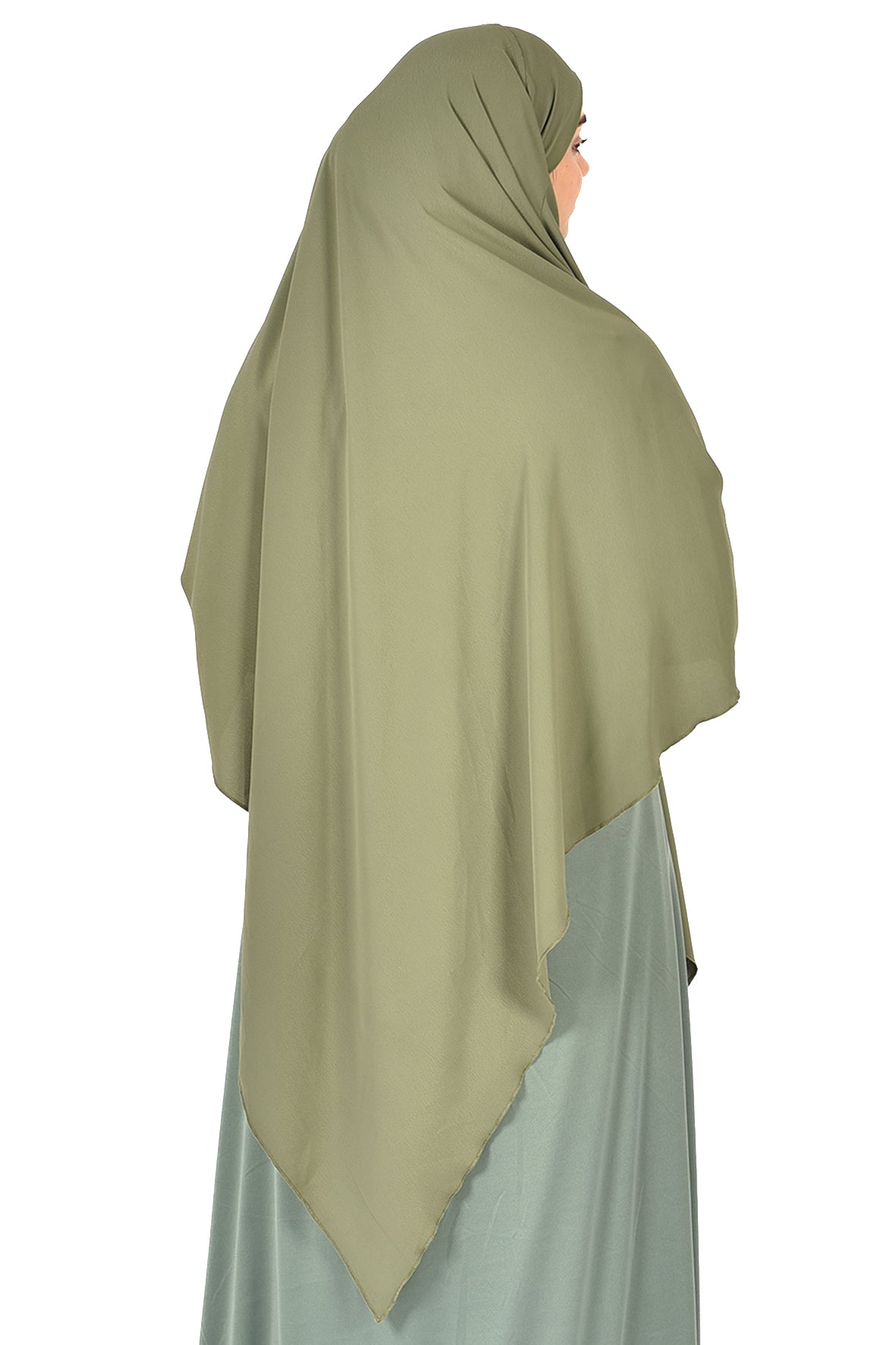 Enjoy a modest and stylish look with this elegant khimar in a soft light olive green shade. Made from soft, breathable crepe fabric, it ensures maximum comfort throughout the day. Designed with full chest and shoulder coverage and a comfortable face opening, it’s perfect for all seasons. Available in multiple colors to match your outfits, making it a practical and elegant choice for any occasion.