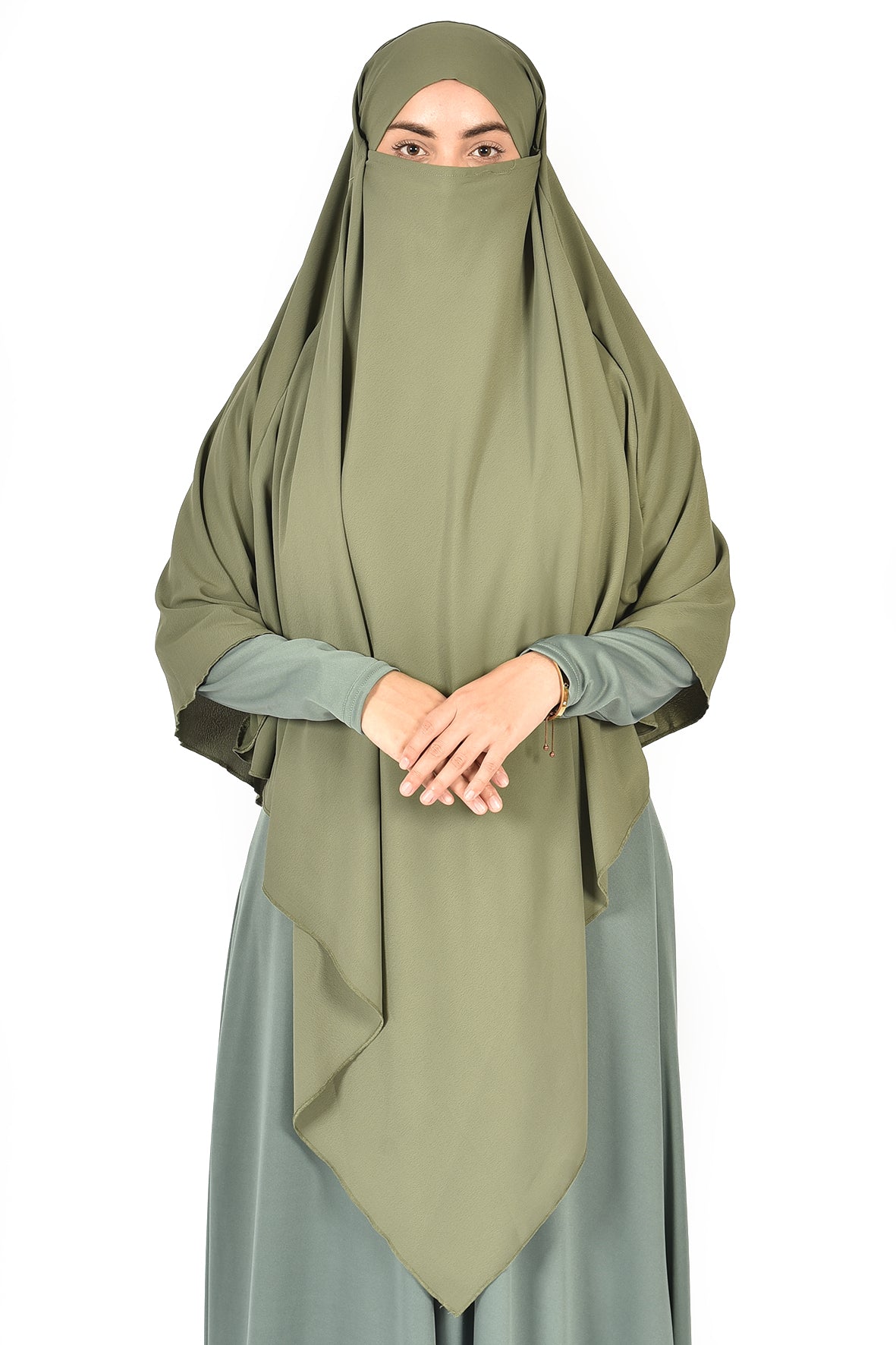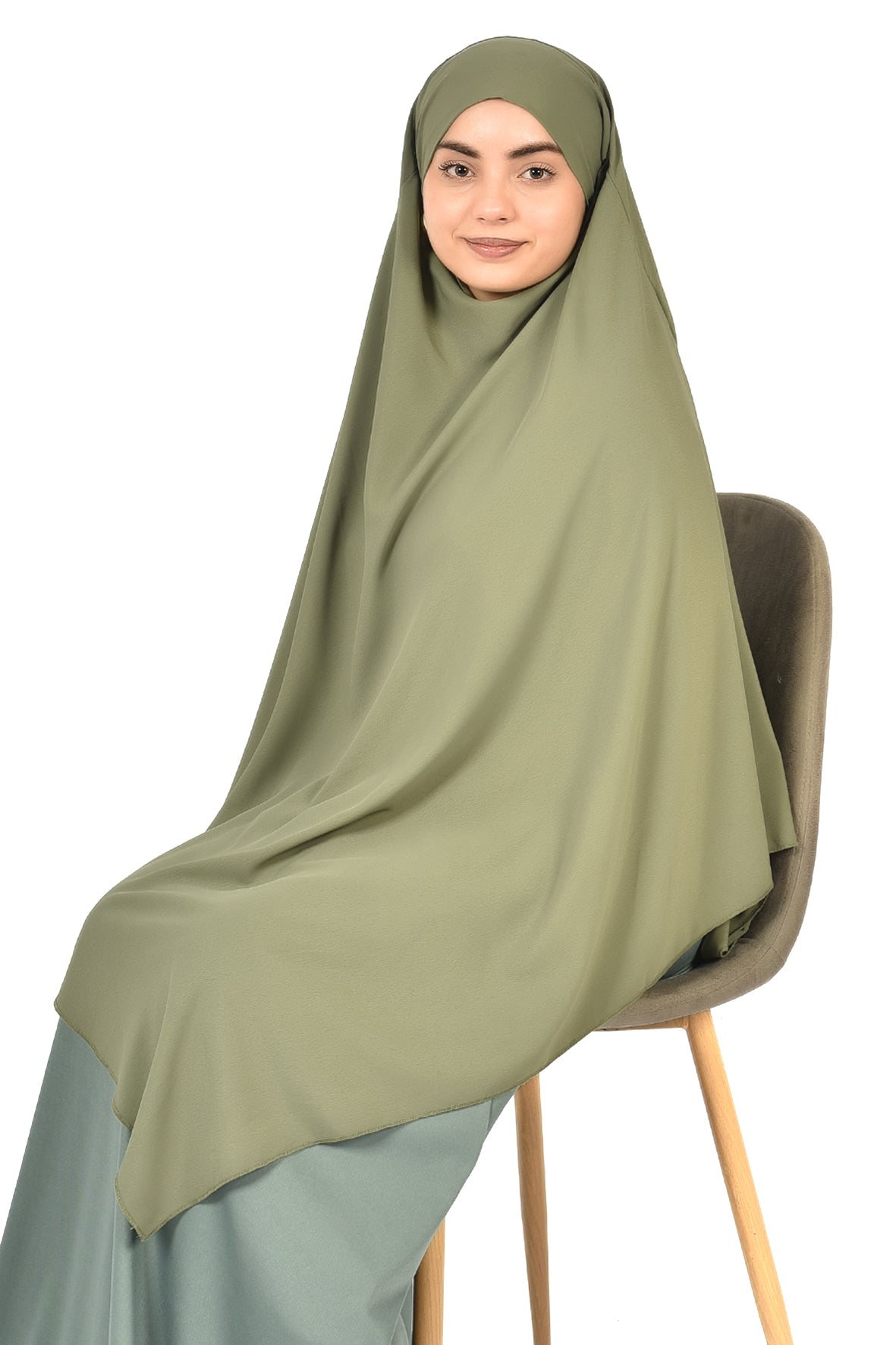 Elegant Women’s Khimar – Light Olive Green, Soft Crepe Fabric
