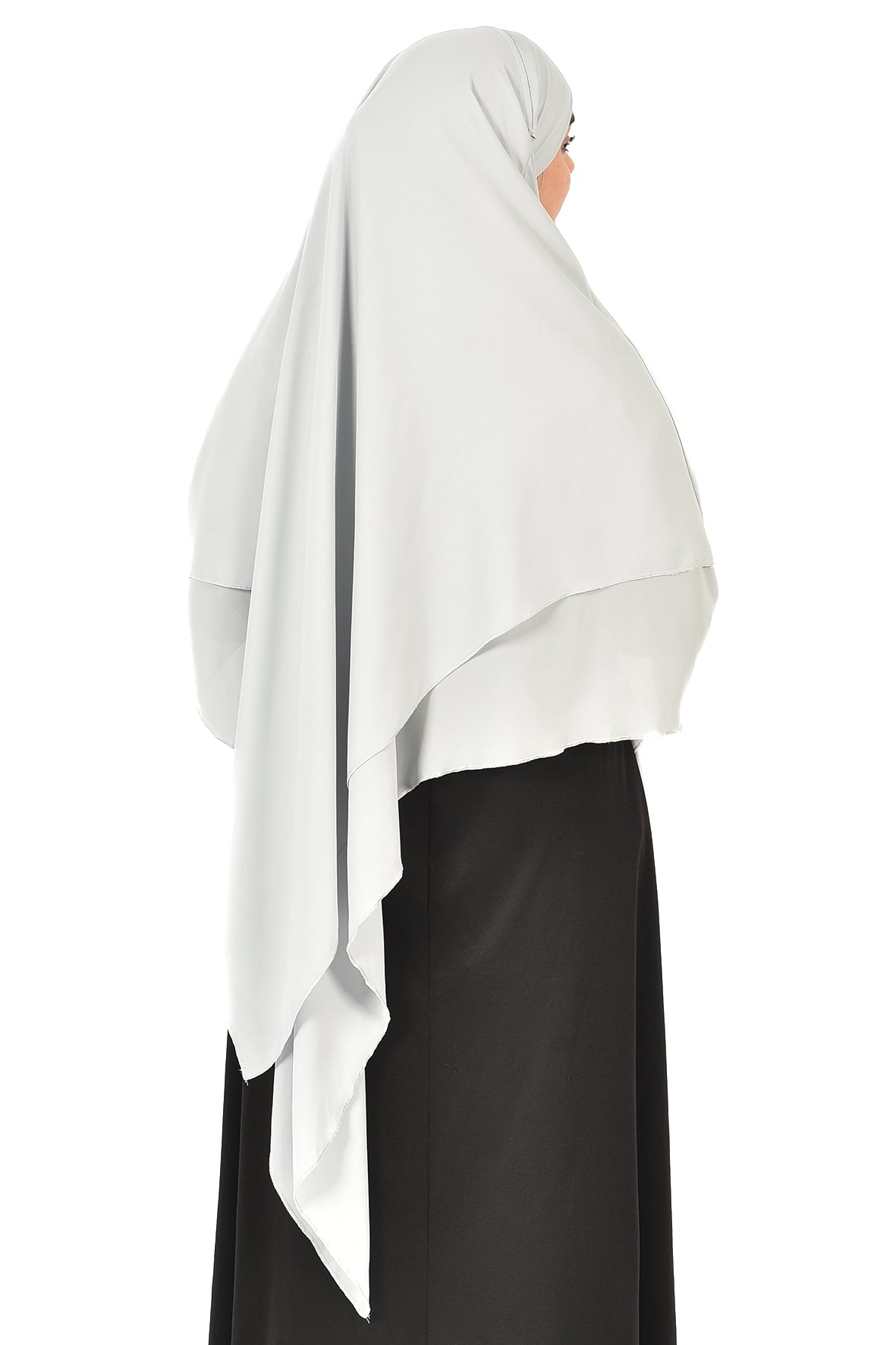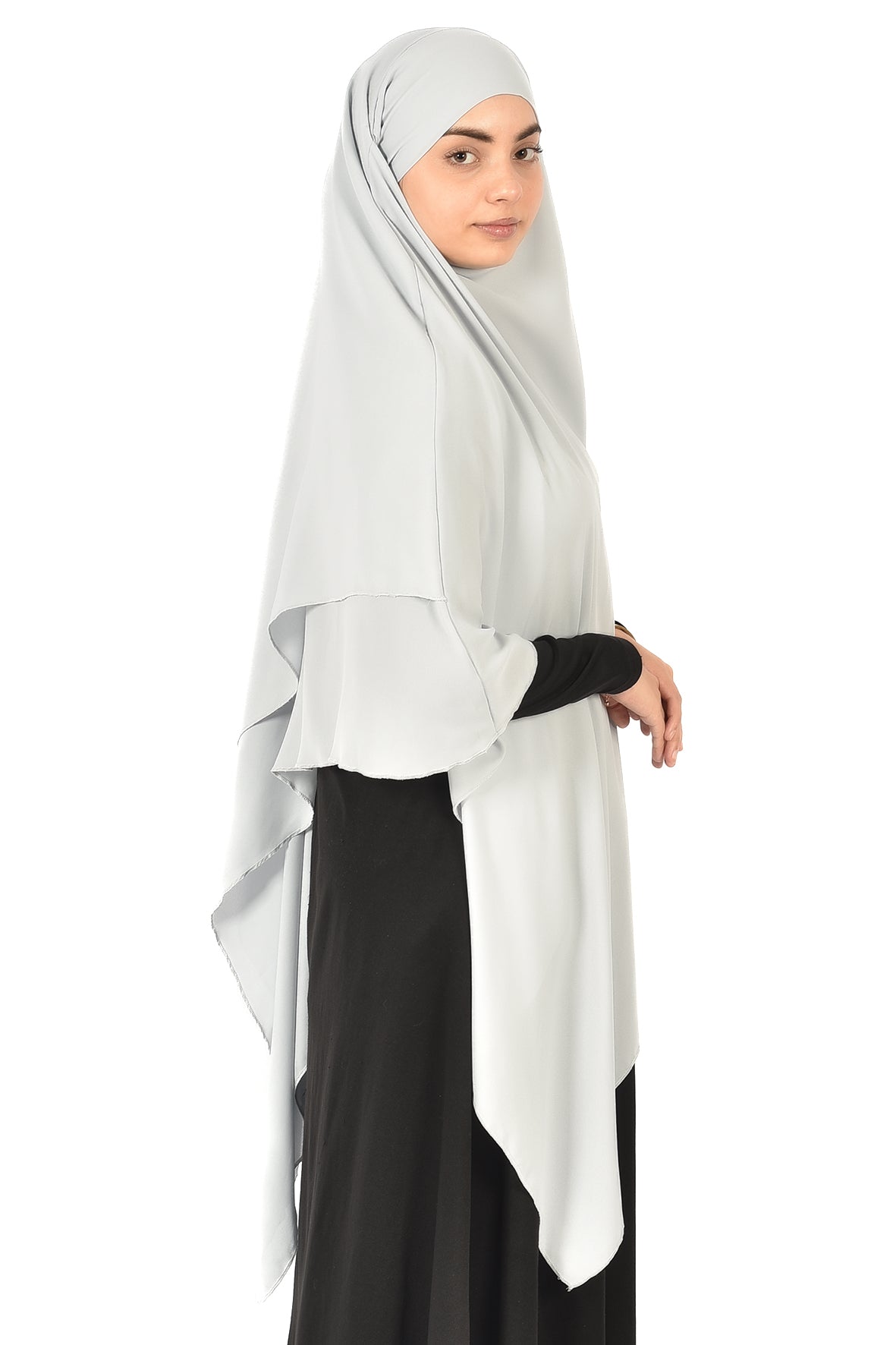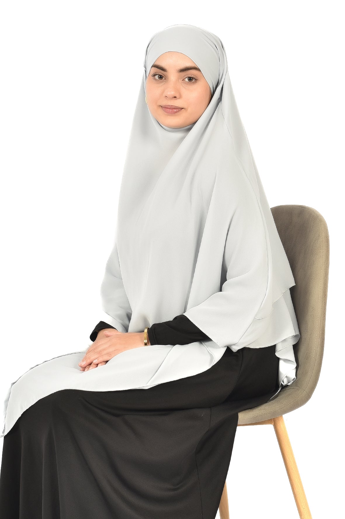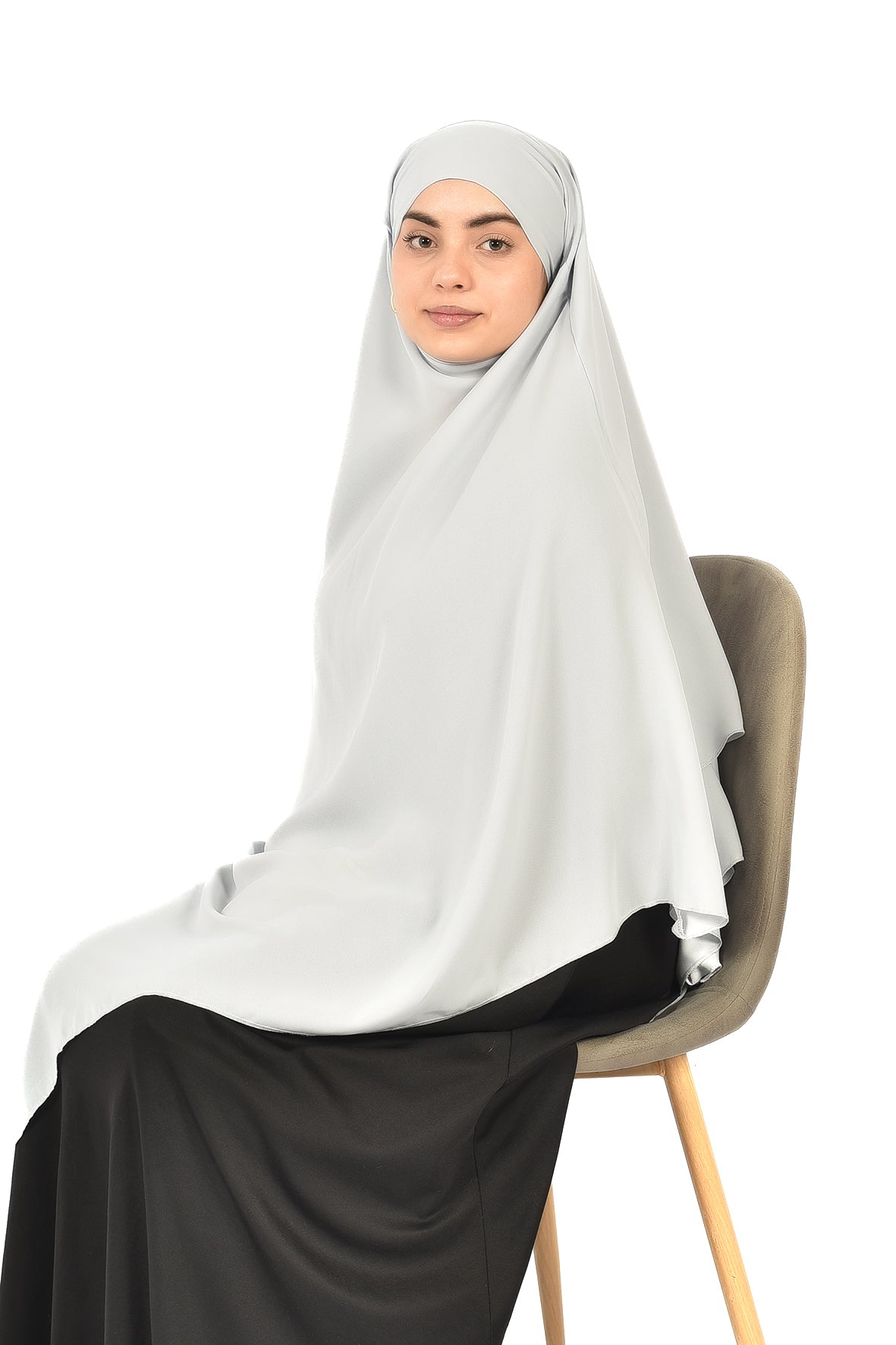 Enjoy a modest and stylish look with this elegant khimar in a soft light silver grey shade. Made from soft, breathable crepe fabric, it ensures maximum comfort throughout the day. Designed with full chest and shoulder coverage and a comfortable face opening, it’s perfect for all seasons. Available in multiple colors to match your outfits, making it a practical and elegant choice for any occasion.
