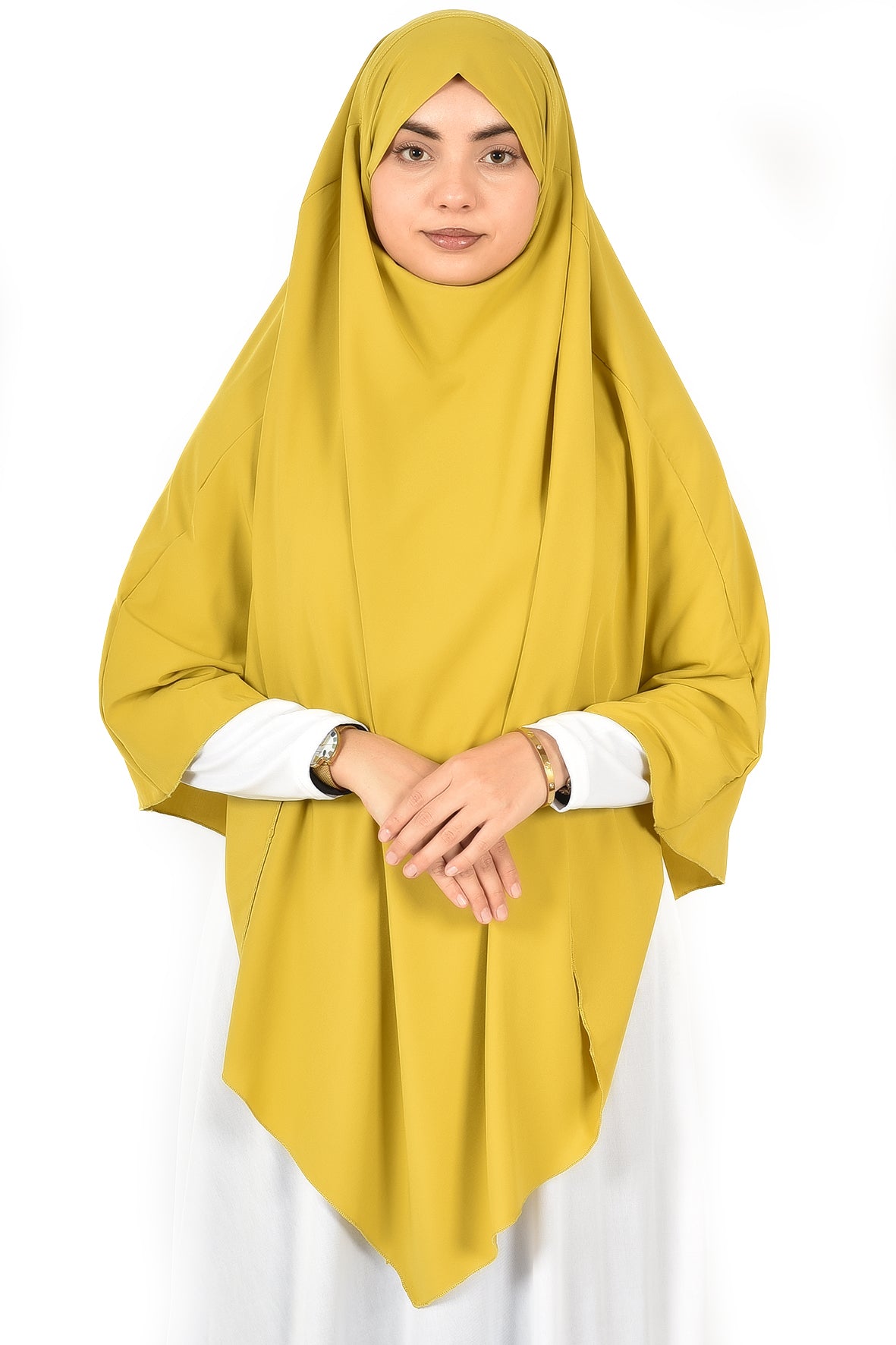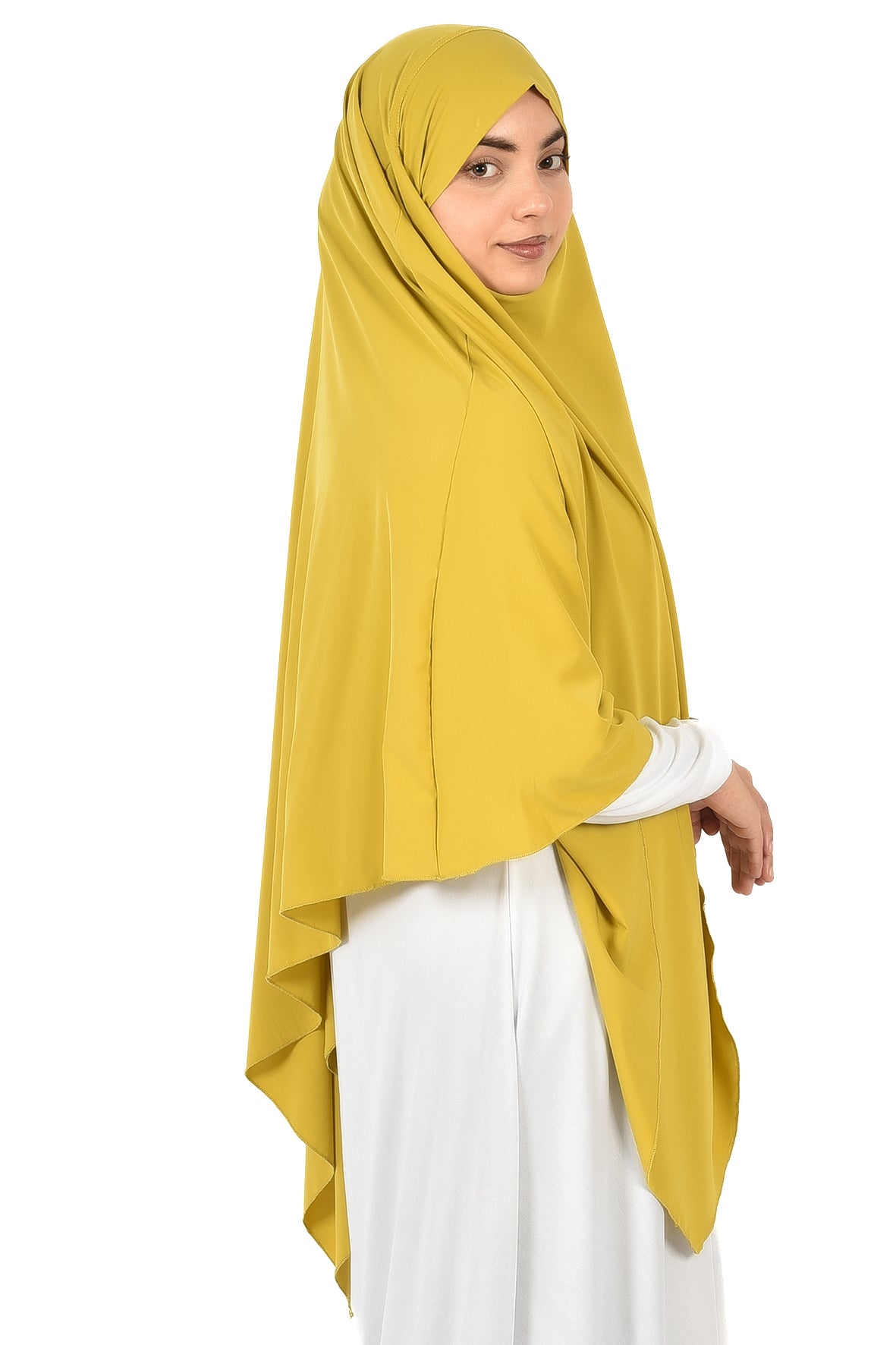 Elegant Women’s Khimar – Mustard Yellow, Soft Crepe Fabric