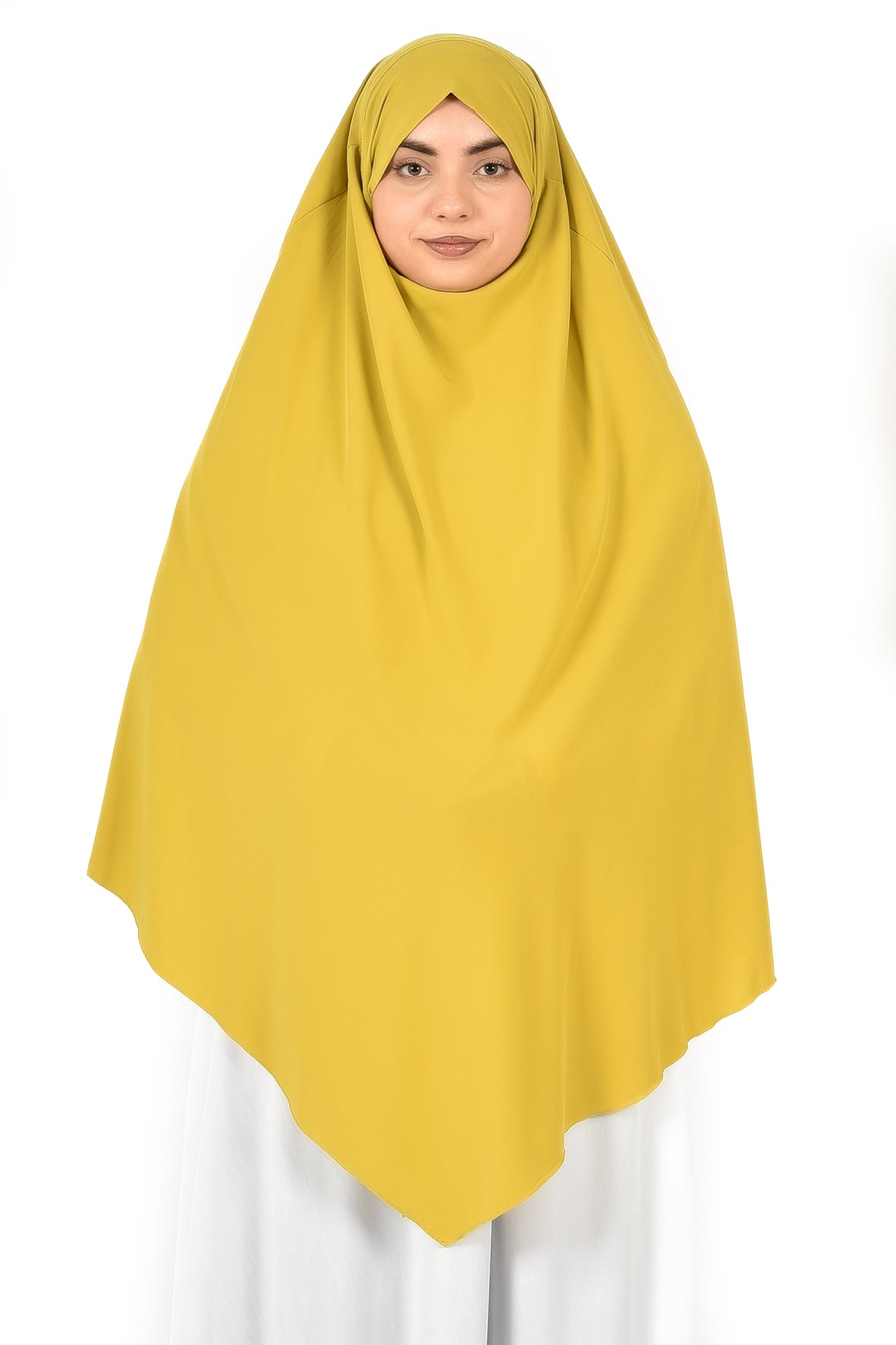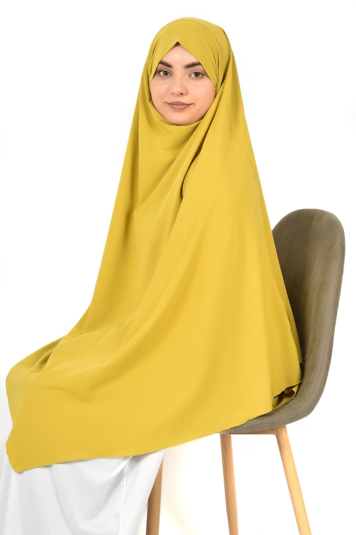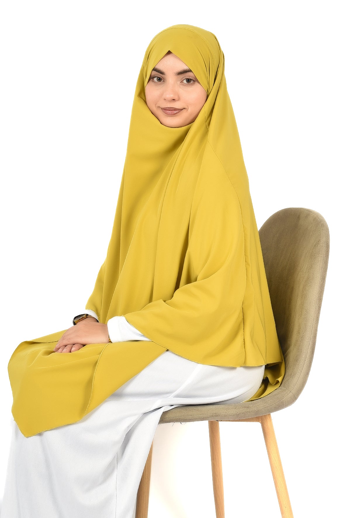Enjoy a modest and stylish look with this elegant khimar in a stunning mustard yellow shade. Made from soft, breathable crepe fabric, it ensures maximum comfort throughout the day. Designed with full chest and shoulder coverage and a comfortable face opening, it’s perfect for all seasons. Available in multiple colors to match your outfits, making it a practical and elegant choice for any occasion.