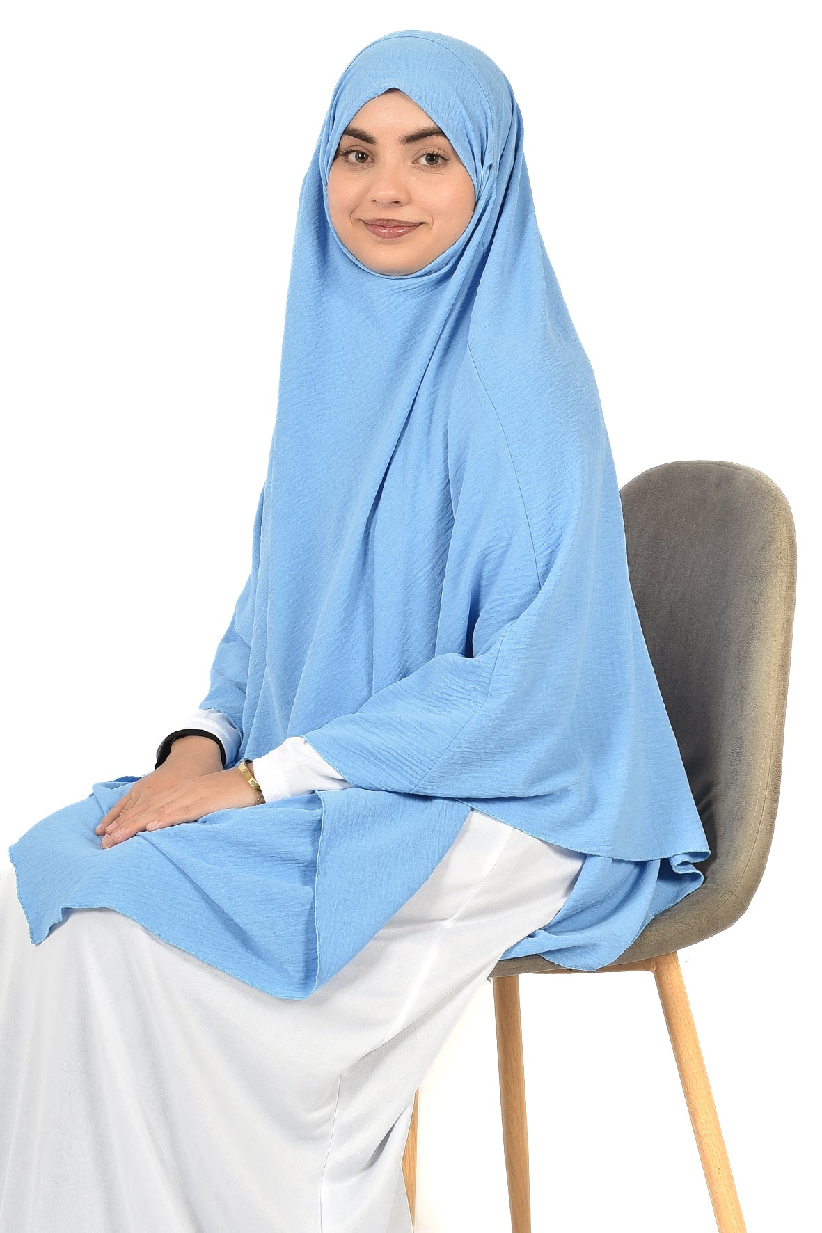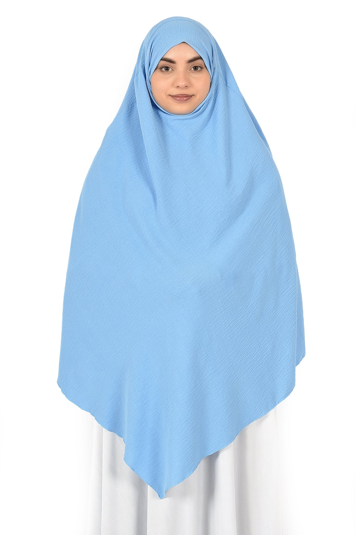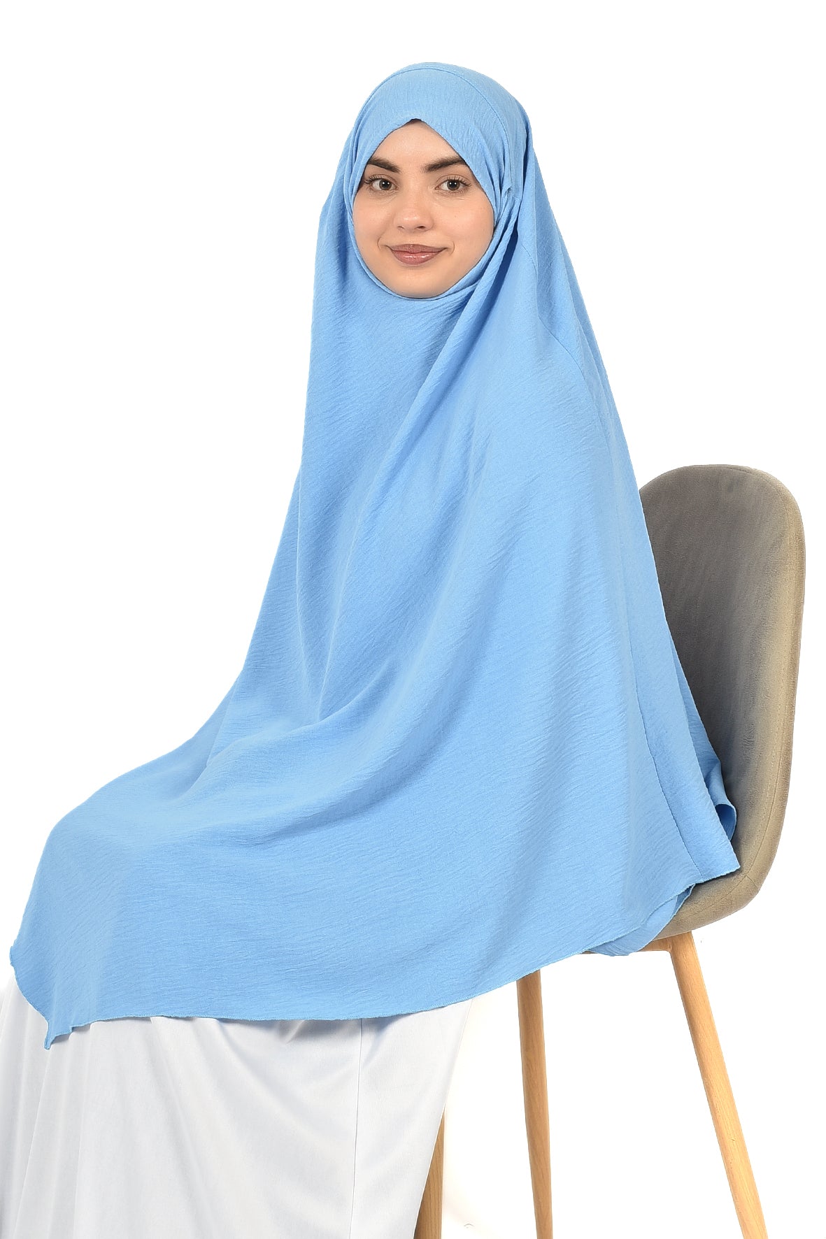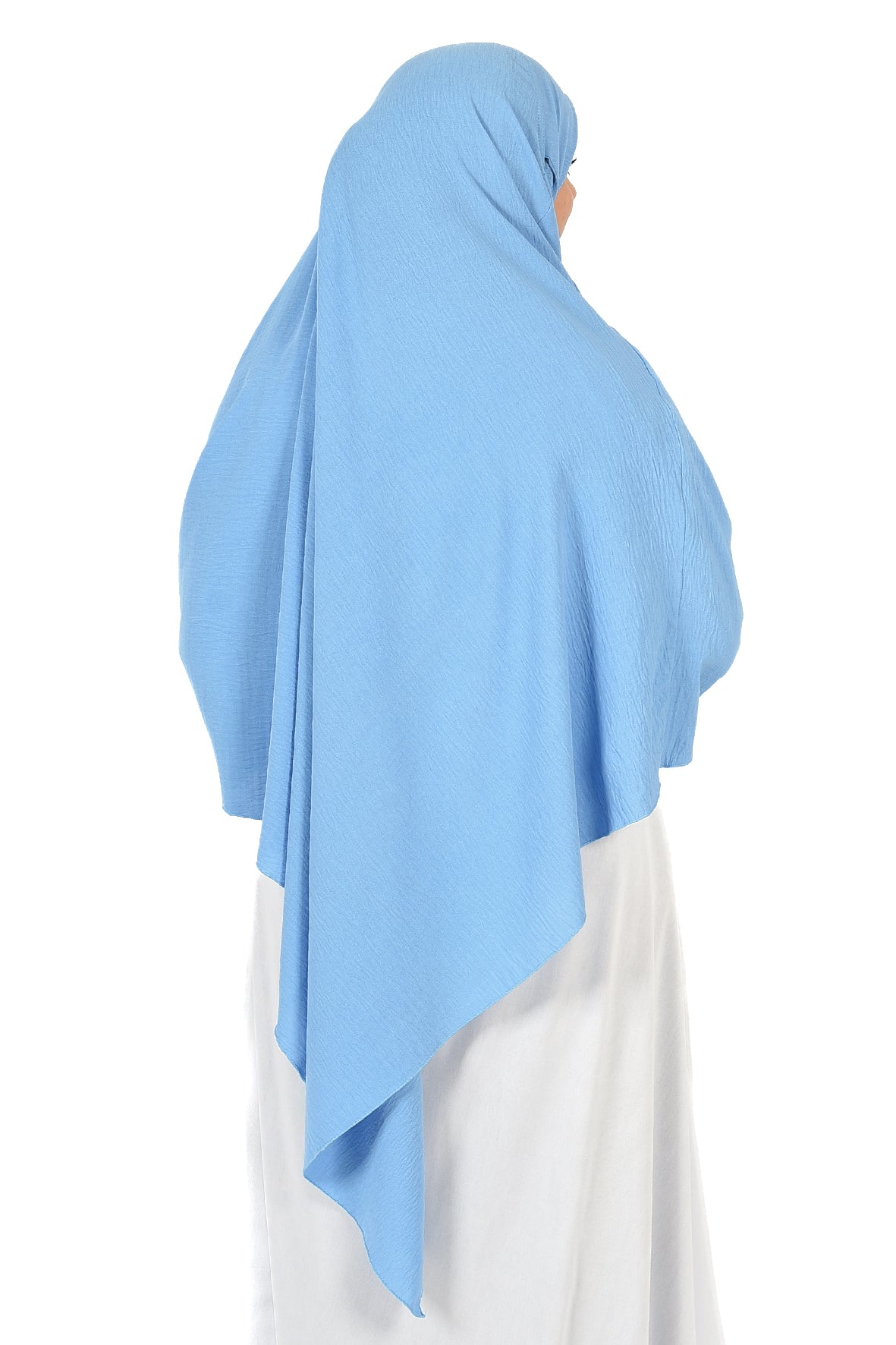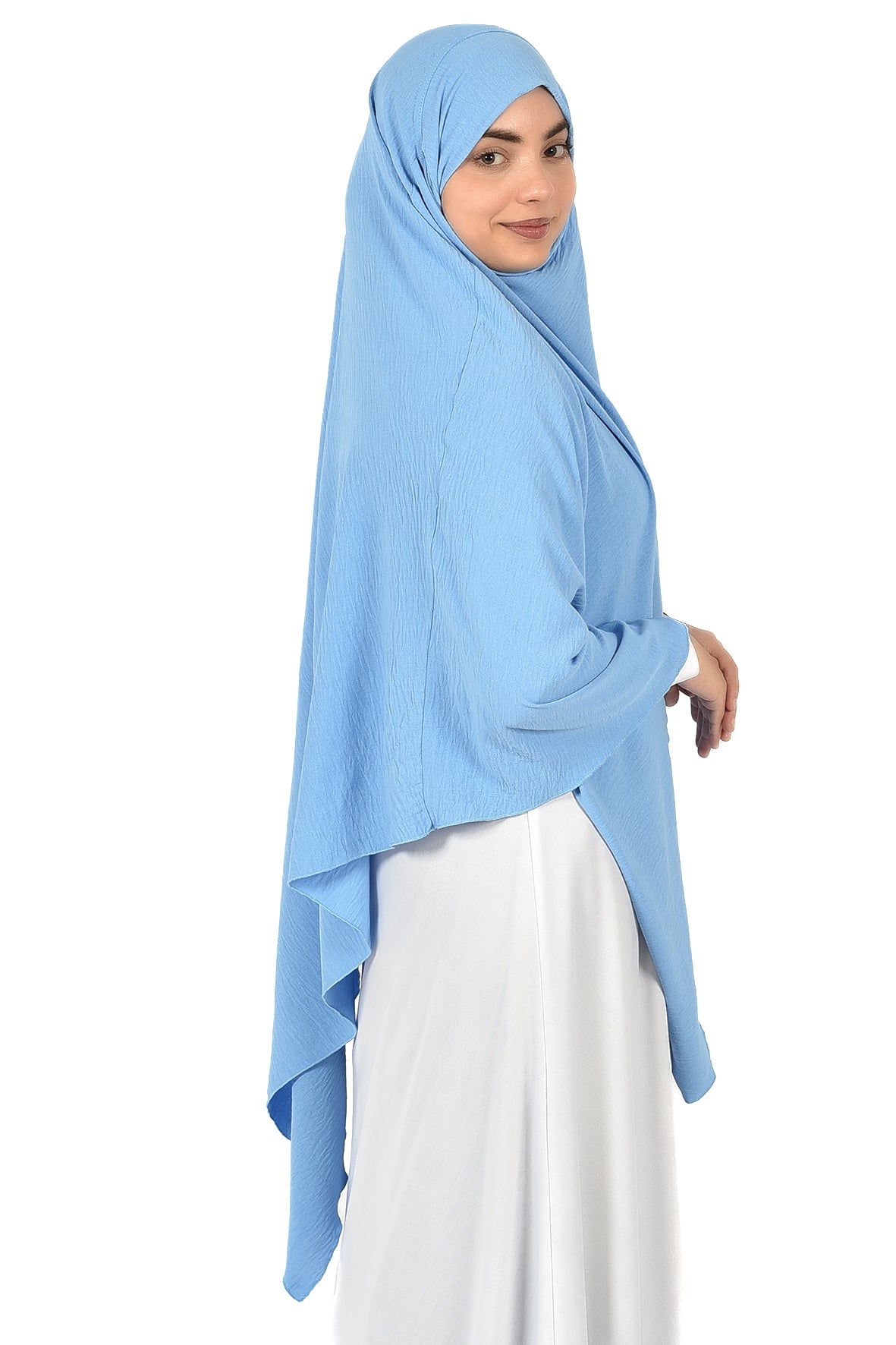 Enjoy a modest and stylish look with this elegant khimar in a serene sky blue shade. Made from soft, breathable crepe fabric, it ensures maximum comfort throughout the day. Designed with full chest and shoulder coverage and a comfortable face opening, it’s perfect for all seasons. Available in multiple colors to match your outfits, making it a practical and elegant choice for any occasion.