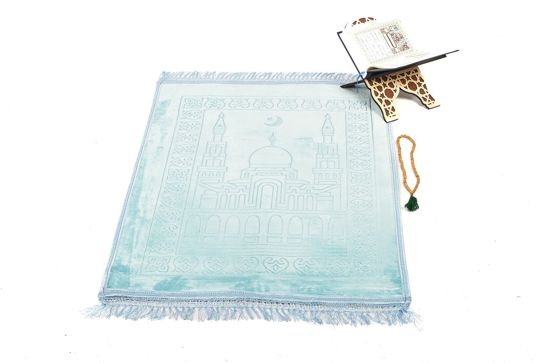 Luxury Velvet Padded Prayer Mat – Sky Blue(musallahs)