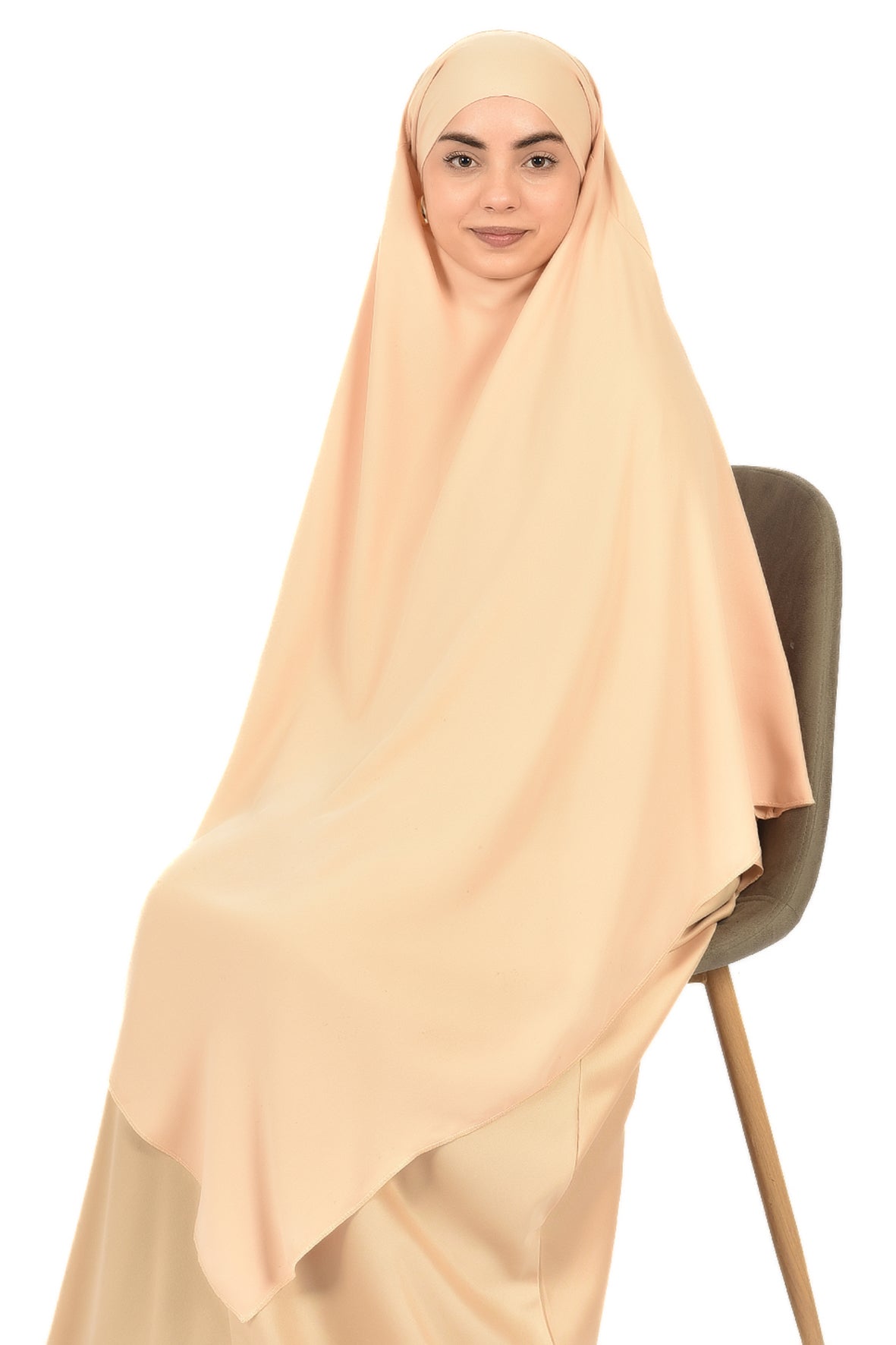 Women's Wide Fit Khimar – Light Beige | Soft Crepe Fabric